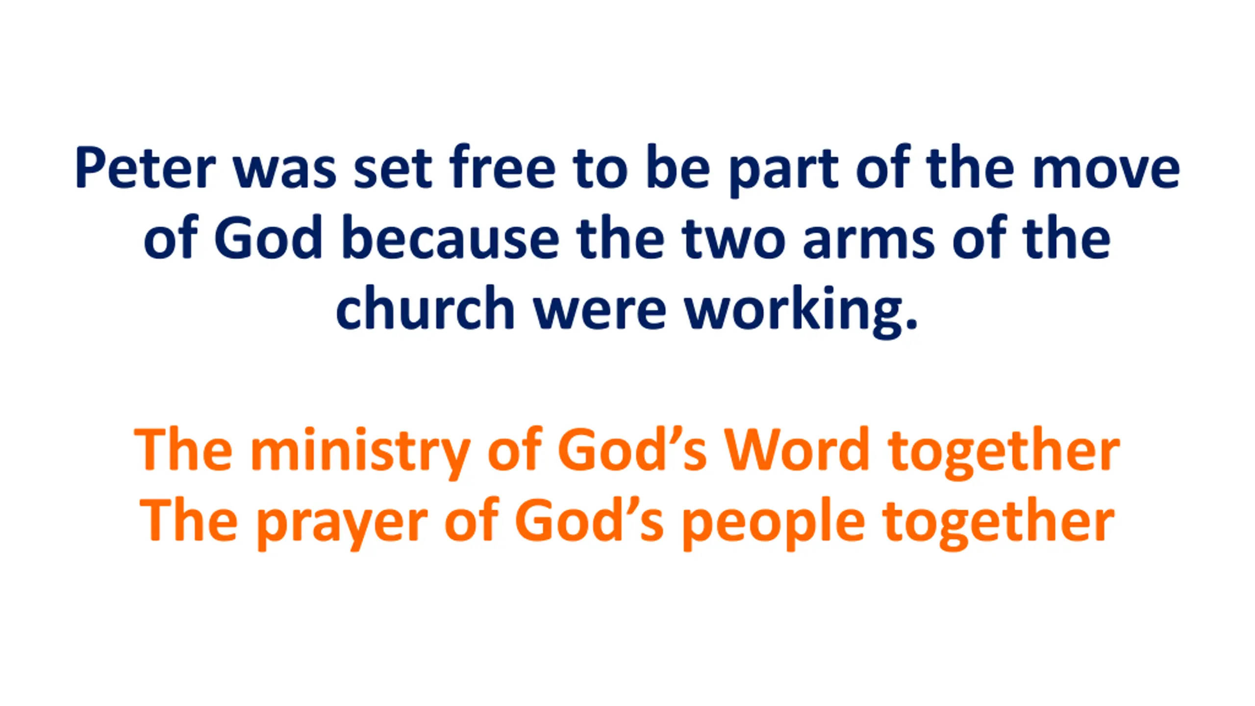 Peter was set free to be part of the move of God because the two arms of the church were working. The ministry of God s Word together The prayer of God s people together