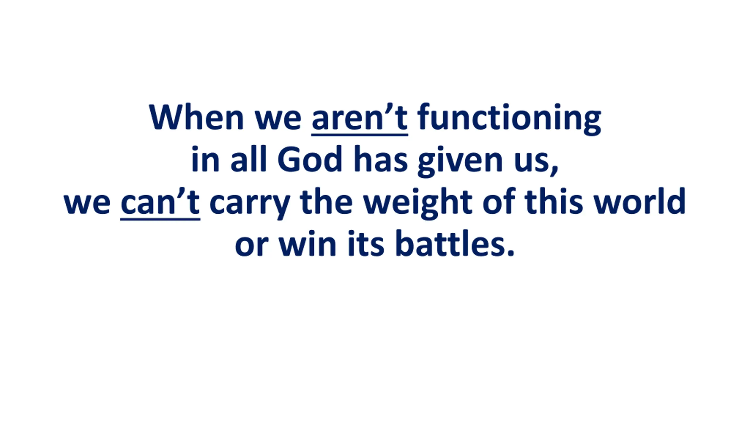 When we arent functioning in all God has given us, we can t carry the weight of this world or win its battles.