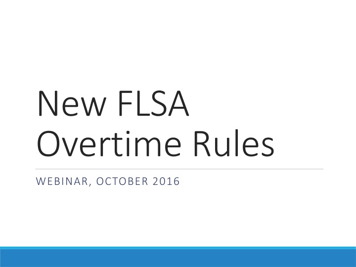 New FLSA Overtime Rules WEBINAR, OCTOBER 2016