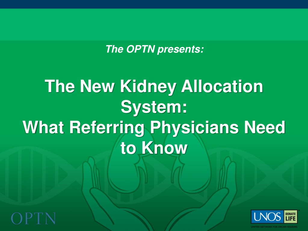 The OPTN presents: The New Kidney Allocation System: What Referring Physicians Need to Know