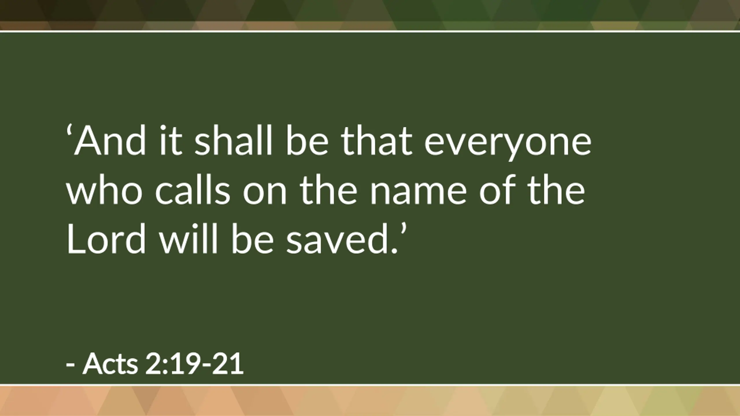 And it shall be that everyone who calls on the name of the Lord will be saved. - - Acts 2:19 Acts 2:19- -21 21