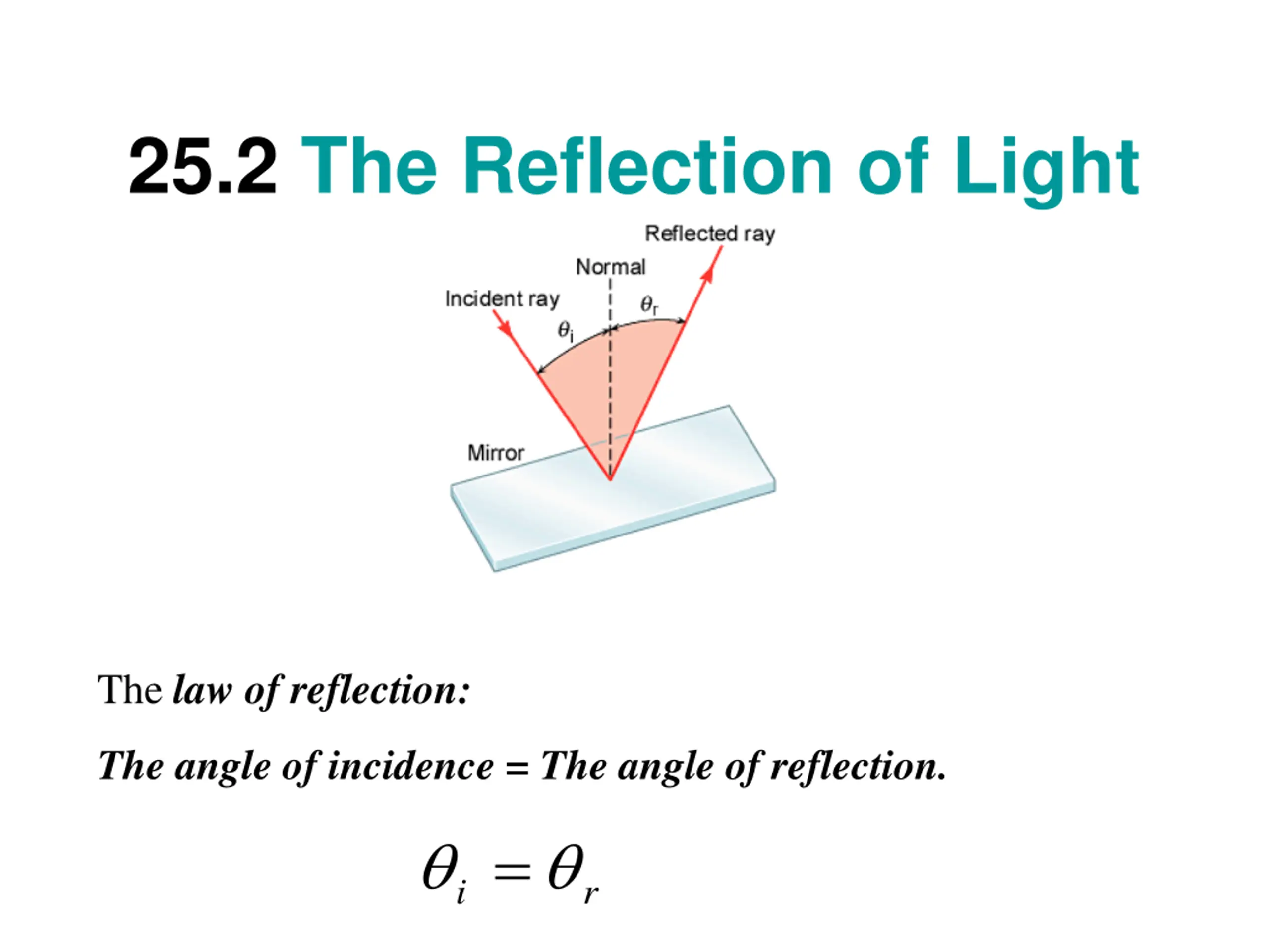 25.2 The Reflection of Light The law of reflection: The angle of incidence = The angle of reflection. = i r