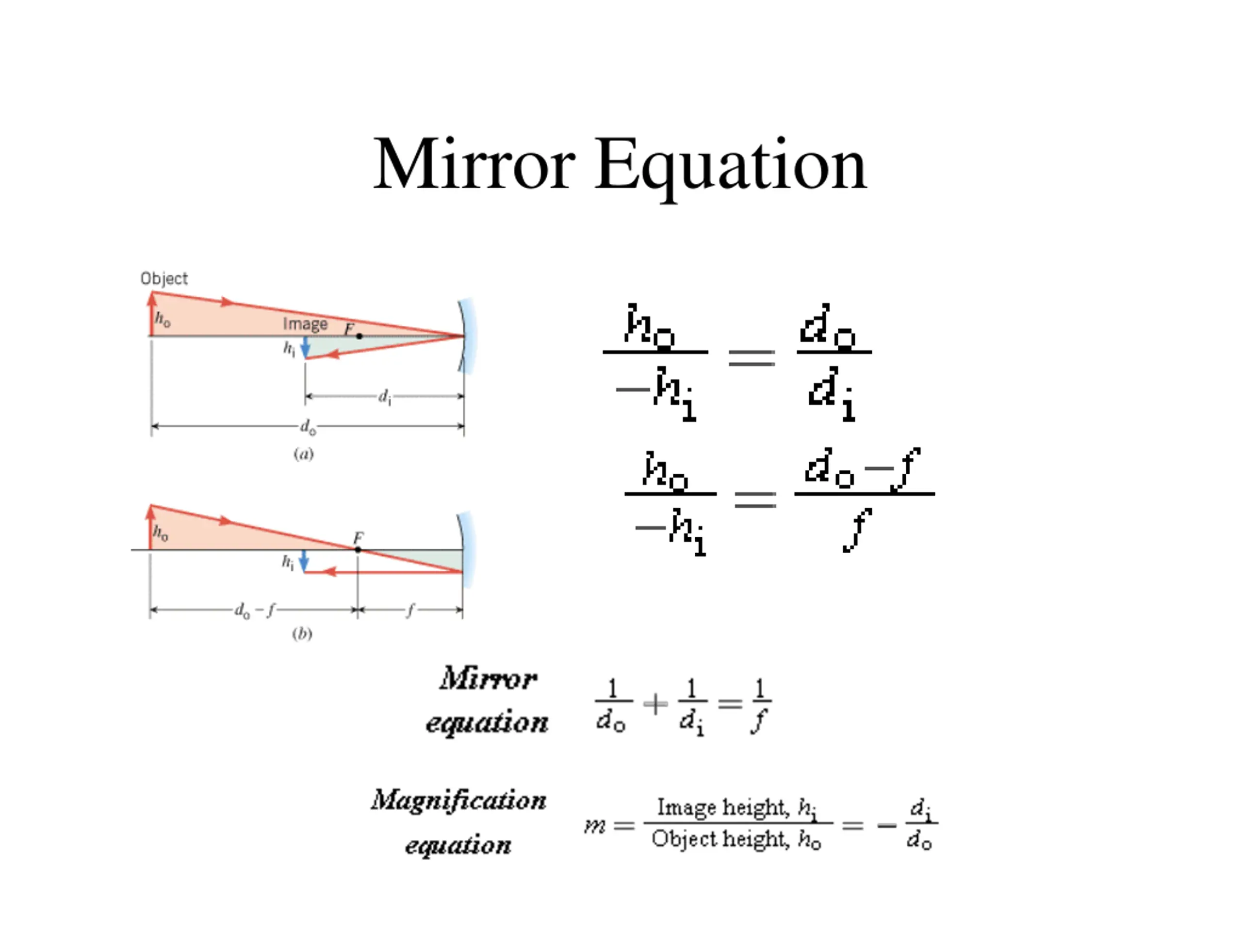 Focal Length and Radius The focal length f is one-half of the radius R. R f = 2