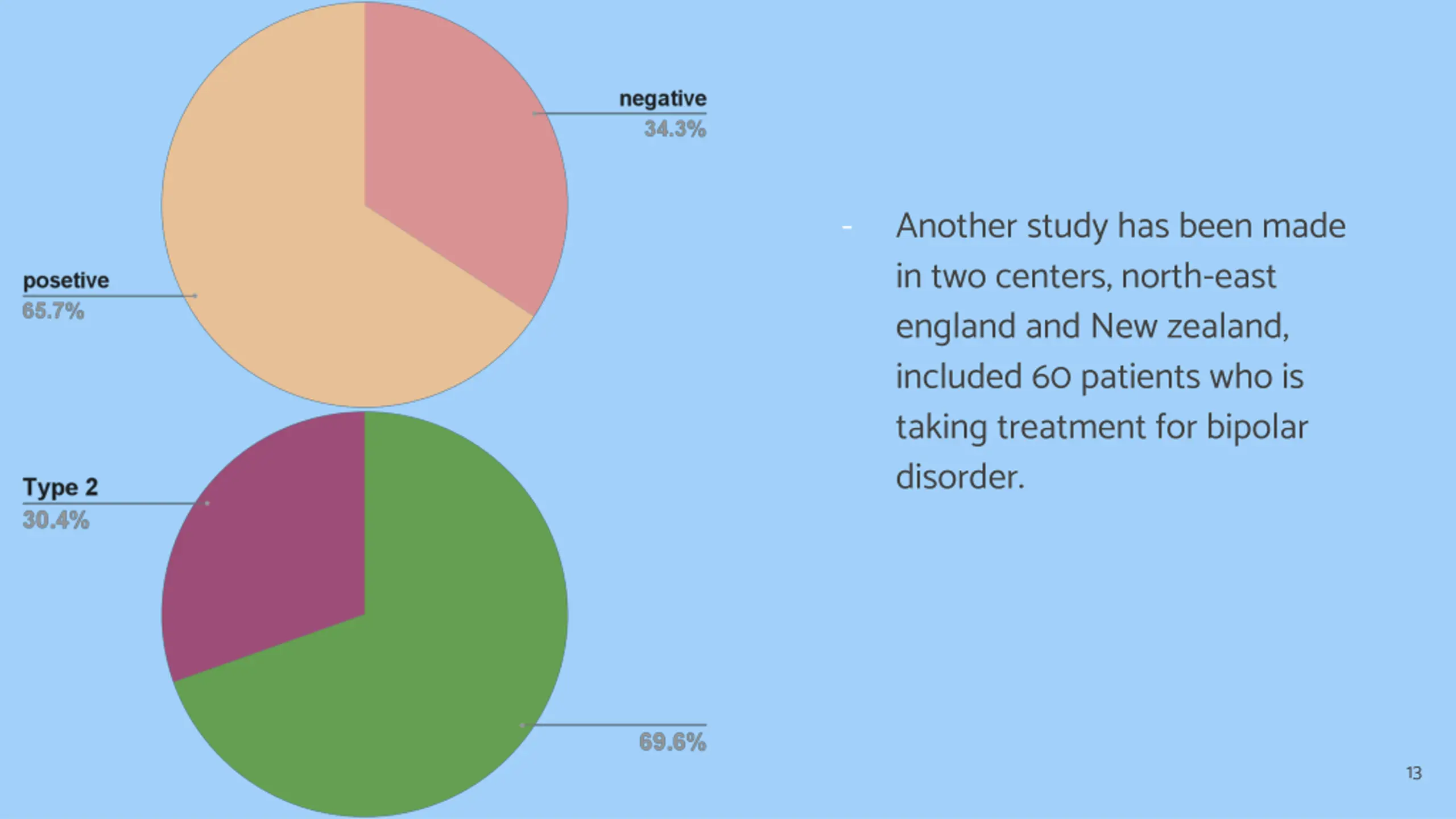 - Another study has been made in two centers, north-east england and New zealand, included 60 patients who is taking treatment for bipolar disorder. 13