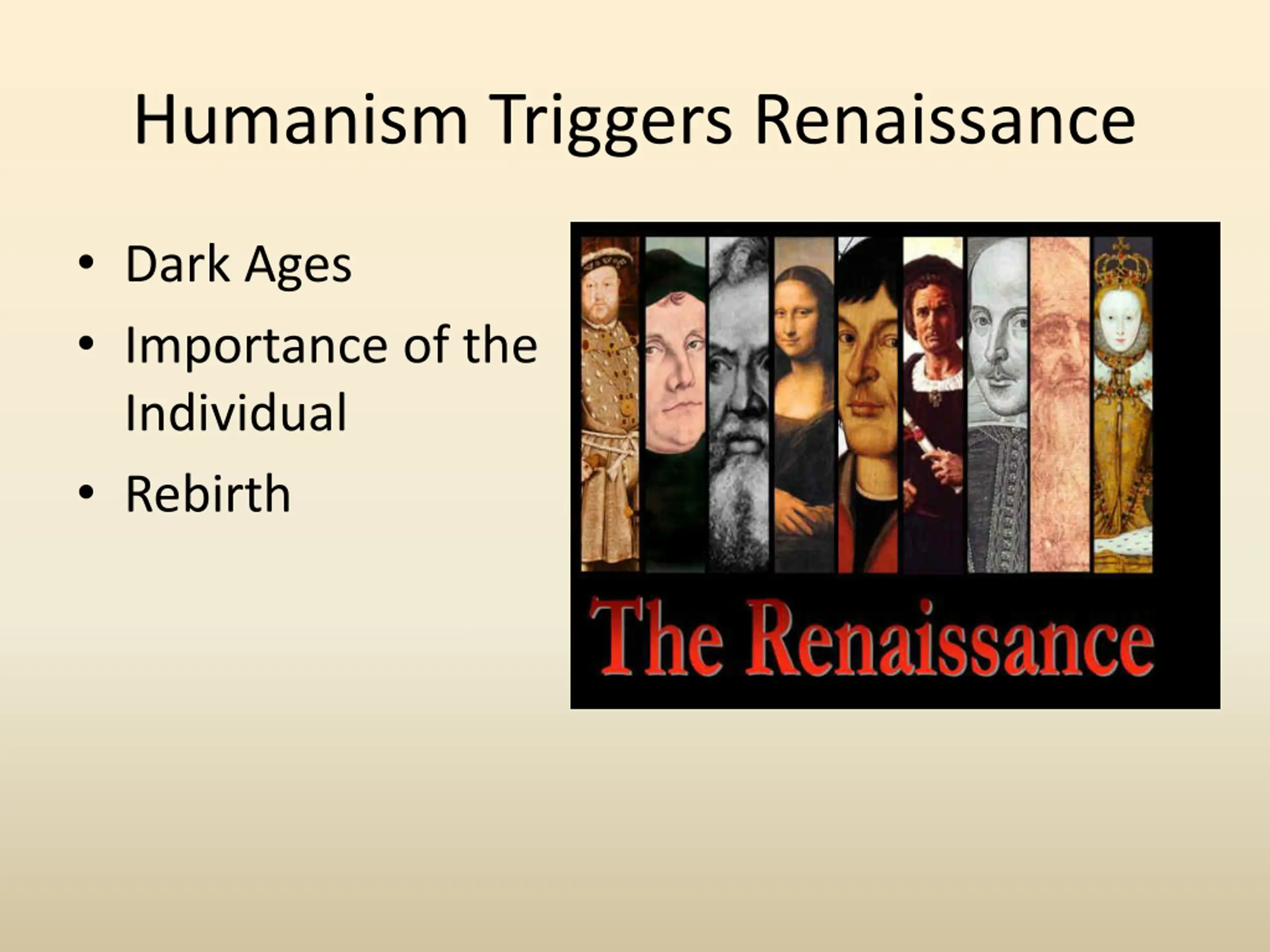 Humanism Triggers Renaissance Dark Ages Importance of the Individual Rebirth