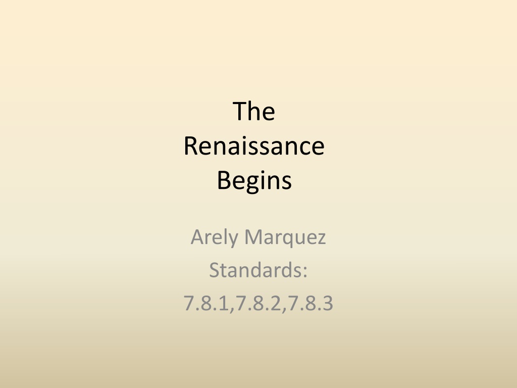 The Renaissance Begins Arely Marquez Standards: 7.8.1,7.8.2,7.8.3