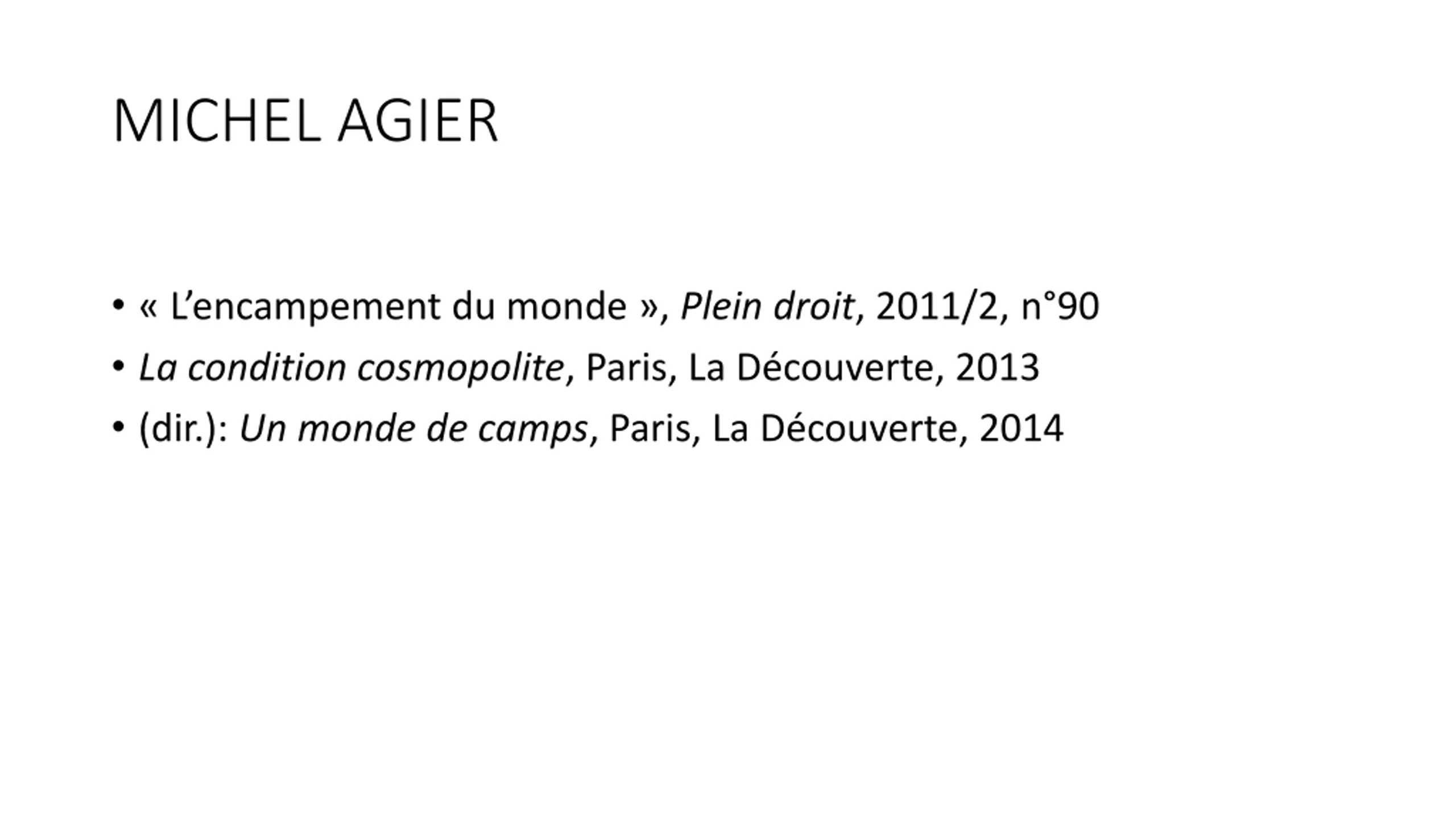 MICHEL AGIER L encampement du monde , Plein droit, 2011/2, n 90 La condition cosmopolite, Paris, La D couverte, 2013 (dir.): Un monde de camps, Paris, La D couverte, 2014