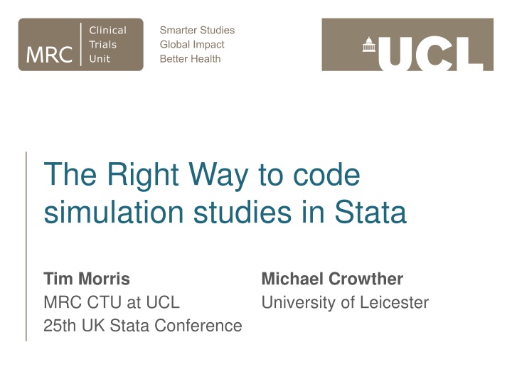 The Right Way to code simulation studies in Stata Tim Morris MRC CTU at UCL 25th UK Stata Conference Michael Crowther University of Leicester