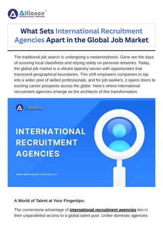 5. Enhanced Candidate Experience Providing a positive candidate experience will be crucial for recruitment agencies. This involves clear and transparent communication, timely feedback, and a seamless recruitment process. Agencies that prioritize candidate experience will be more successful in attracting and retaining top talent. Conclusion In conclusion, recruitment agencies play a vital role in Nigeria s job market by bridging the gap between employers and job seekers, reducing unemployment, and providing efficient hiring solutions. Despite the challenges they face, recruitment agencies continue to adapt and evolve, leveraging technology and focusing on upskilling to meet the demands of a dynamic job market. As Nigeria s economy grows and diversifies, the role of recruitment agencies will become even more crucial in ensuring that businesses have access to the specialized talent they need to succeed. For companies and job seekers alike, partnering with a reputable recruitment agency in Nigeria can be a game-changer in navigating the complexities of the job market and achieving career and business goals. Alliance Recruitment Agency: Your Global Manpower Agency Alliance Recruitment Agency is a leading global manpower agency specializing in connecting top talent with premier organizations worldwide. As expert executive recruiters, we excel in