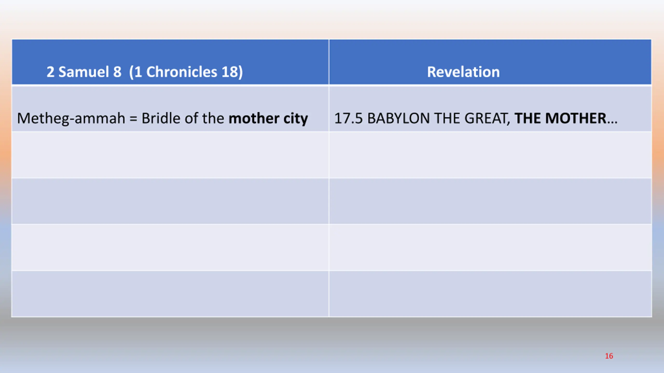 2 Samuel 8 (1 Chronicles 18) Revelation Metheg-ammah = Bridle of the mother city 17.5 BABYLON THE GREAT, THE MOTHER 16