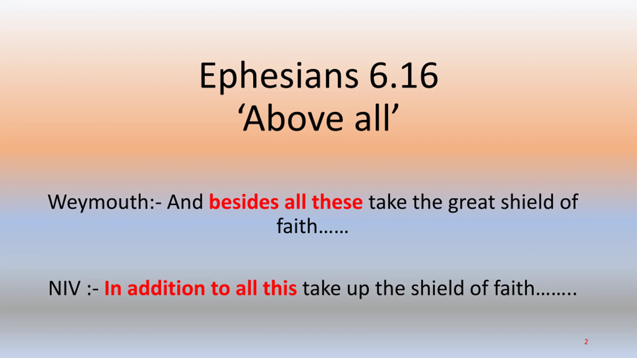 Ephesians 6.16 Above all Weymouth:- And besides all these take the great shield of faith NIV :- In addition to all this take up the shield of faith .. 2
