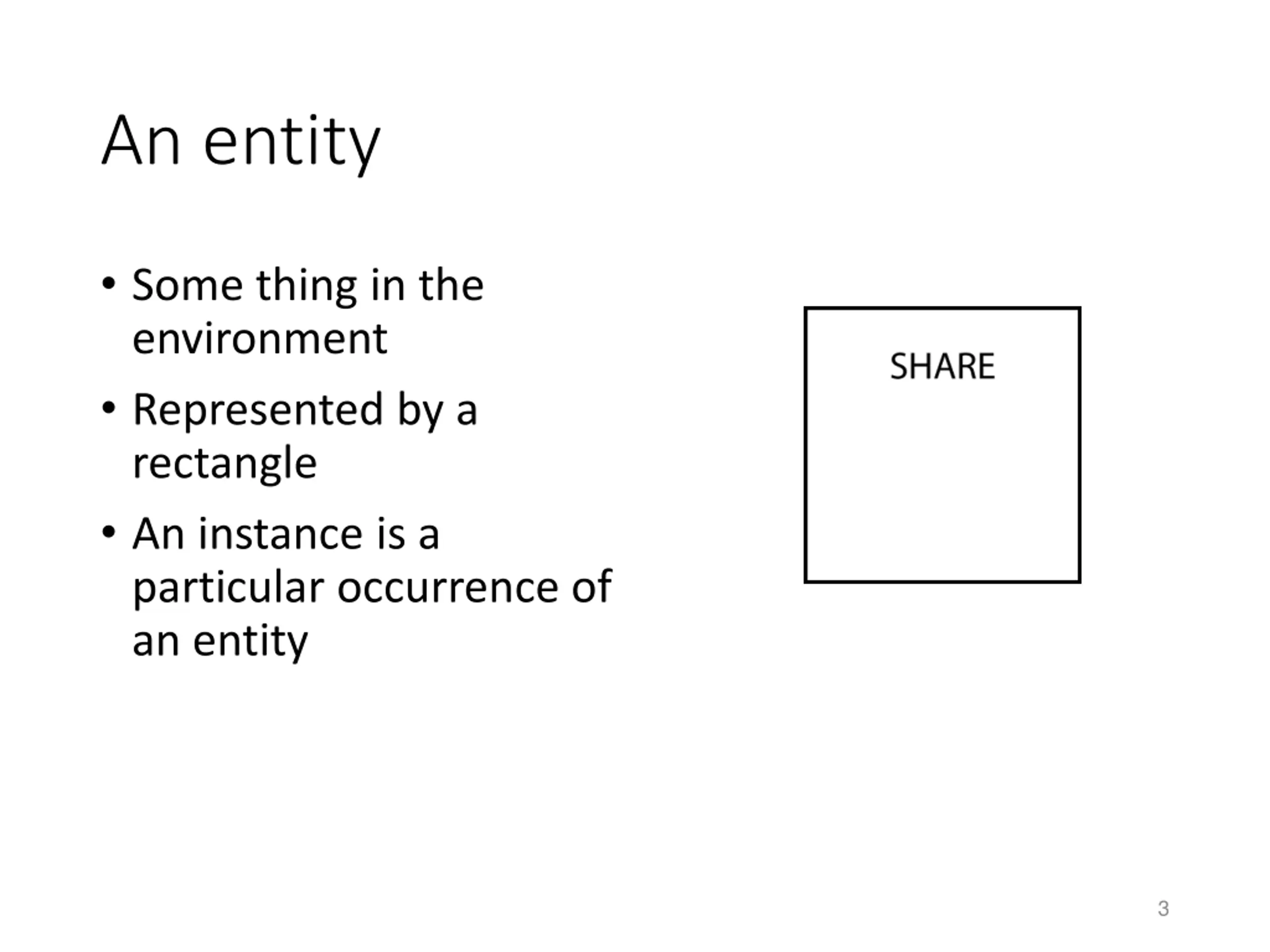 An entity Some thing in the environment Represented by a rectangle An instance is a particular occurrence of an entity 3
