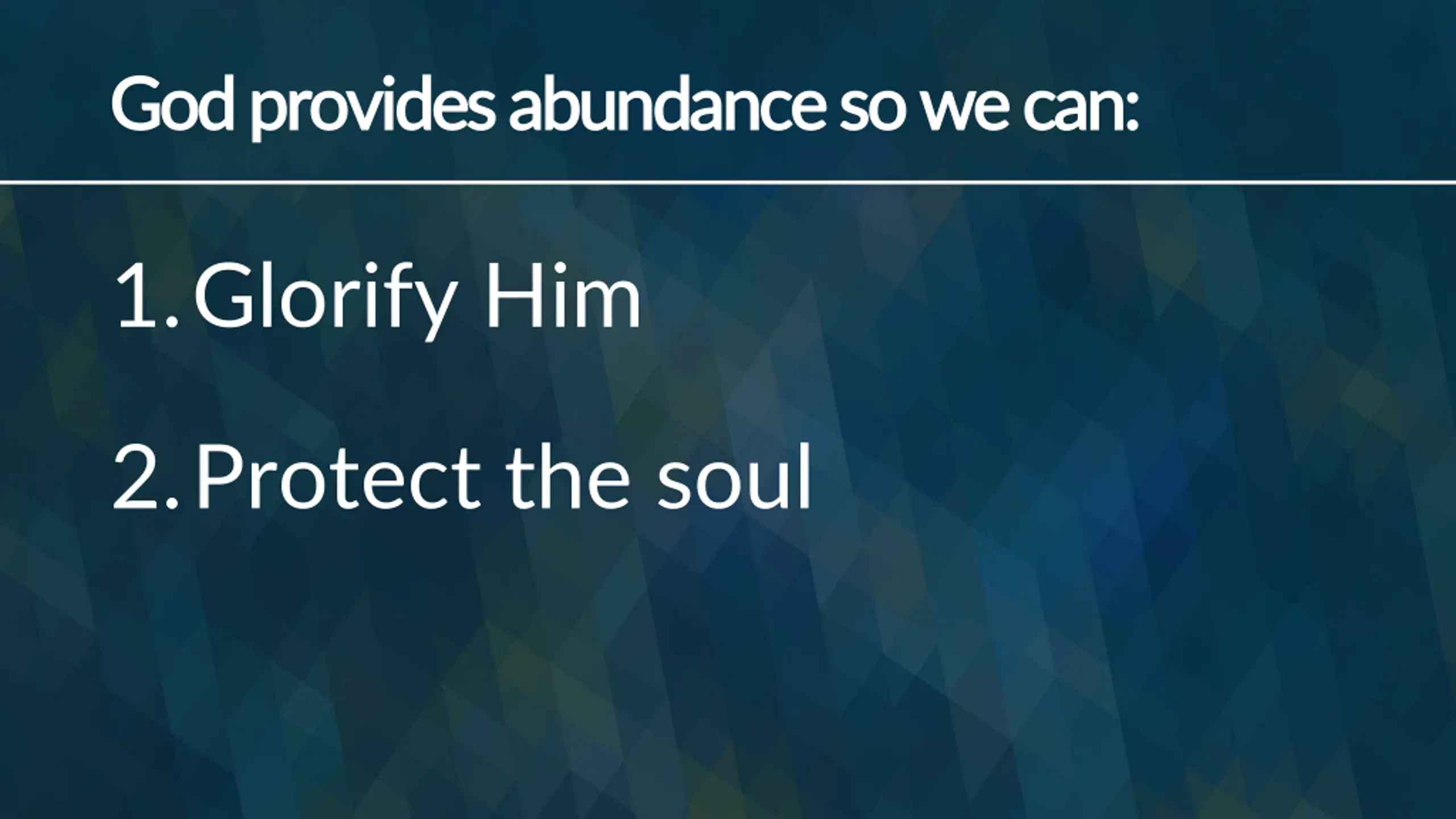God provides abundance so we can: God provides abundance so we can: 1.Glorify Him 2.Protect the soul