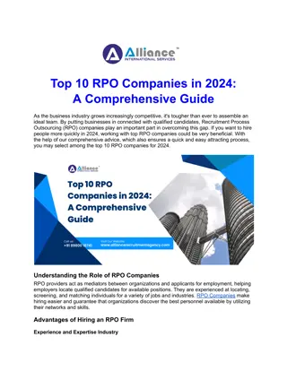 What is RPO? Recruitment Process Outsourcing (RPO) involves a company transferring all or part of its recruitment processes to an external service provider. This approach allows businesses to leverage the expertise, technology, and resources of specialized firms, thereby enhancing their talent acquisition strategies. Why Choose an RPO Company? Partnering with an RPO company can bring several benefits, including: 1.Cost Efficiency: RPO providers streamline recruitment processes, reducing costs associated with hiring. 2.Scalability: RPO services can scale according to the company s needs, accommodating periods of rapid growth or downsizing. 3.Access to Expertise: RPO firms possess deep industry knowledge and advanced recruitment technologies. 4.Improved Quality of Hire: Through thorough screening and assessment, RPO companies ensure high-quality hires. 5.Enhanced Employer Branding: Professional recruitment processes enhance the company s image in the job market. Key Features of Top RPO Companies in the USA