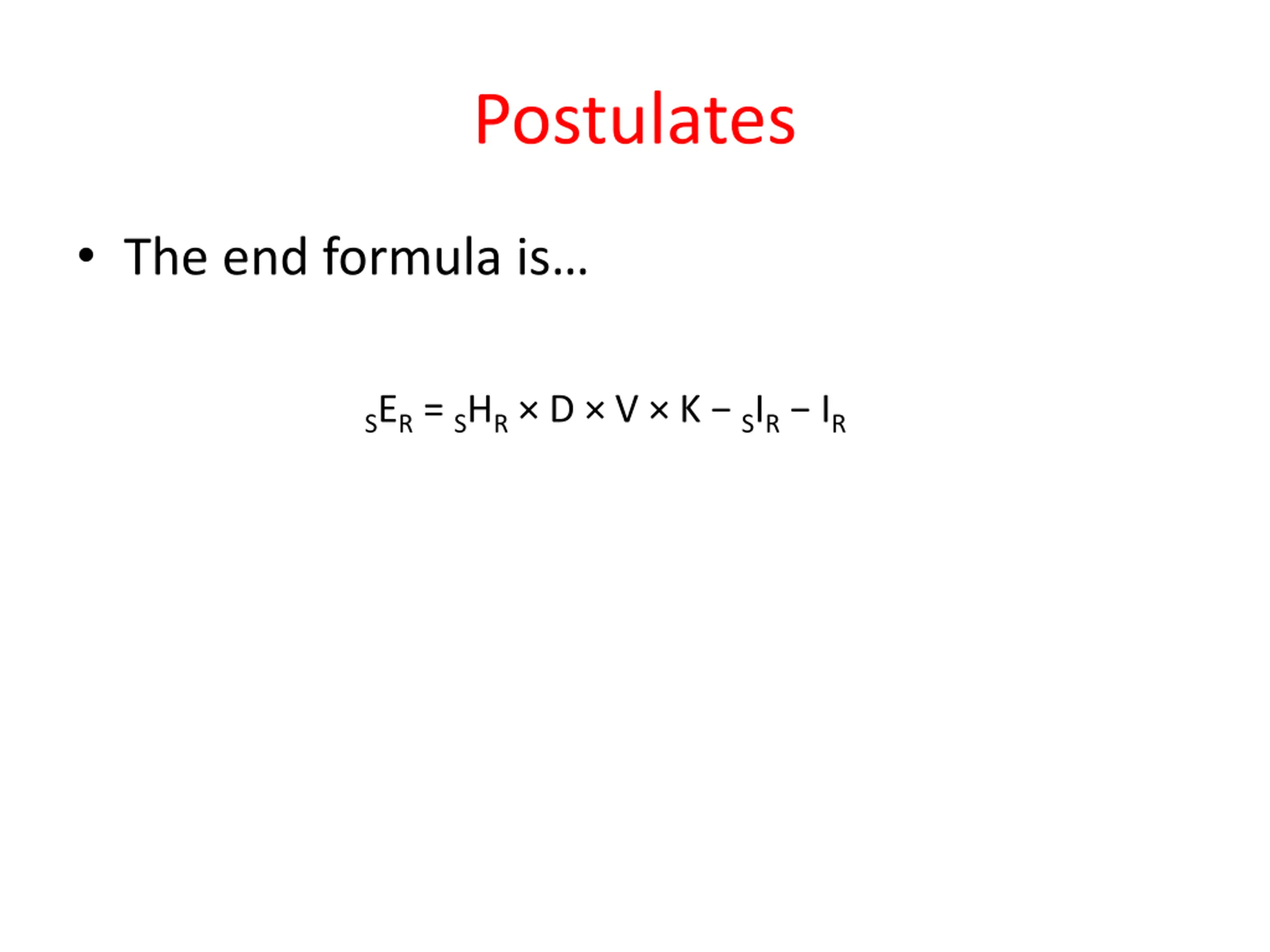 Postulates The end formula is SER = SHR D V K SIR IR