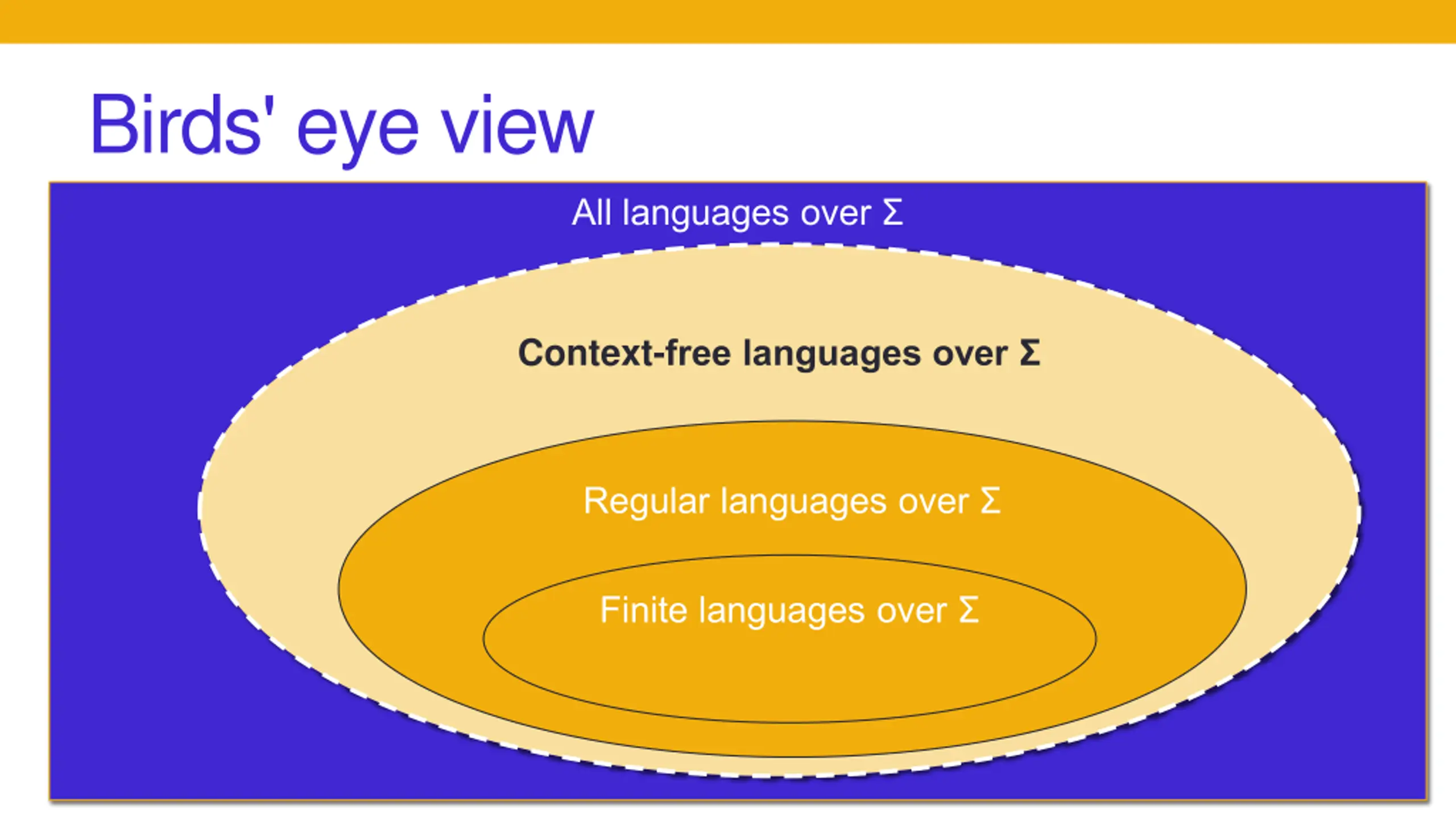 Birds' eye view All languages over Context-free languages over Regular languages over Finite languages over
