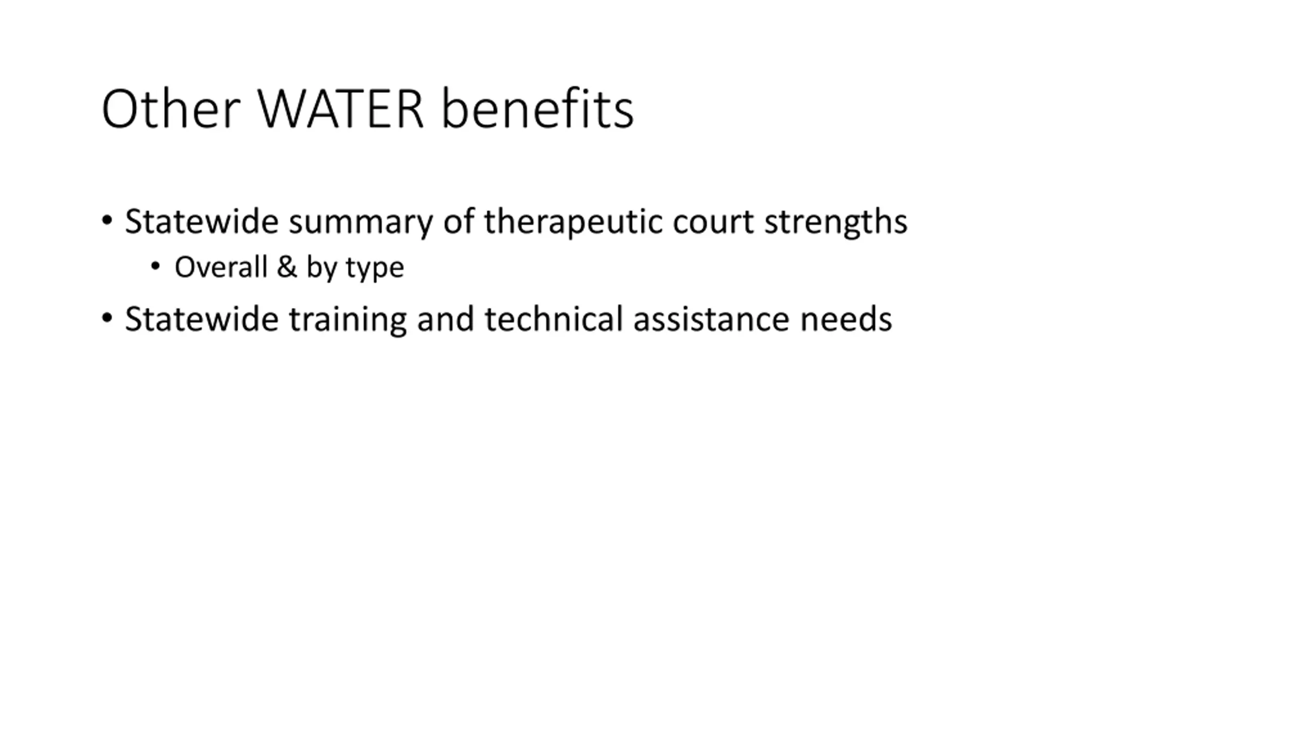 Other WATER benefits Statewide summary of therapeutic court strengths Overall & by type Statewide training and technical assistance needs
