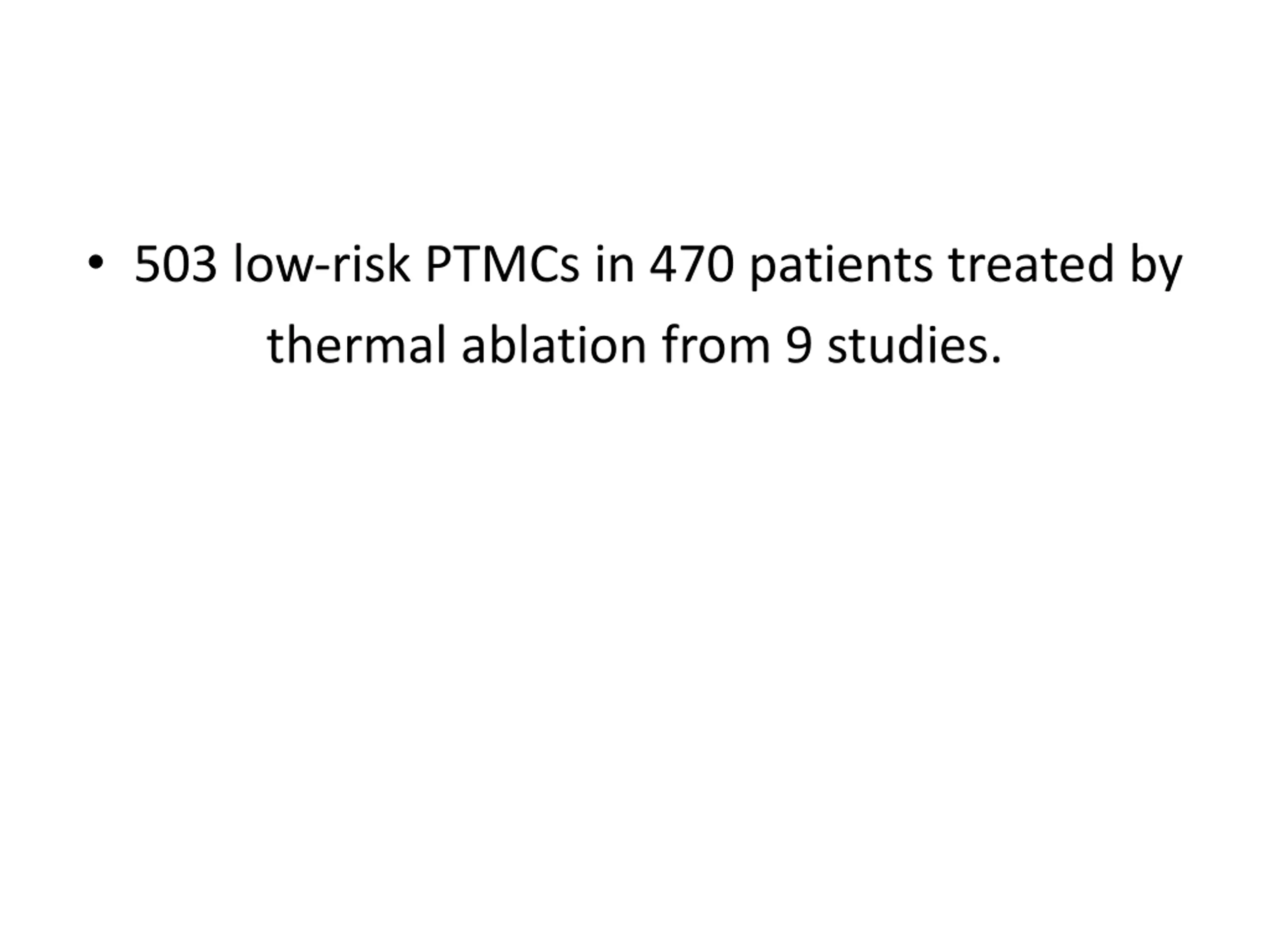 503 lowrisk PTMCs in 470 patients treated by thermal ablation from 9 studies.