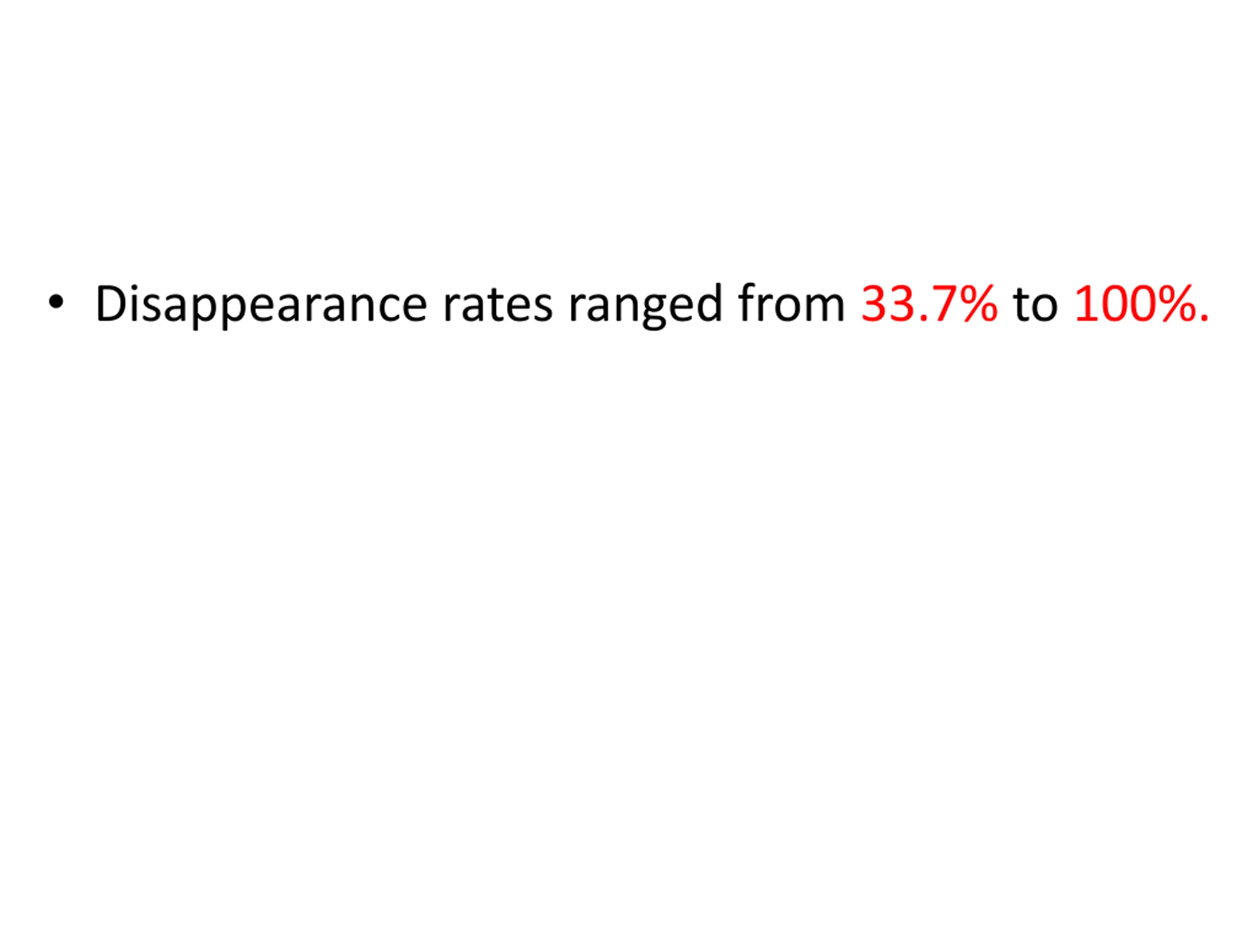 Disappearance rate was defined as complete tumor disappearance or the presence of residual scar like changes.
