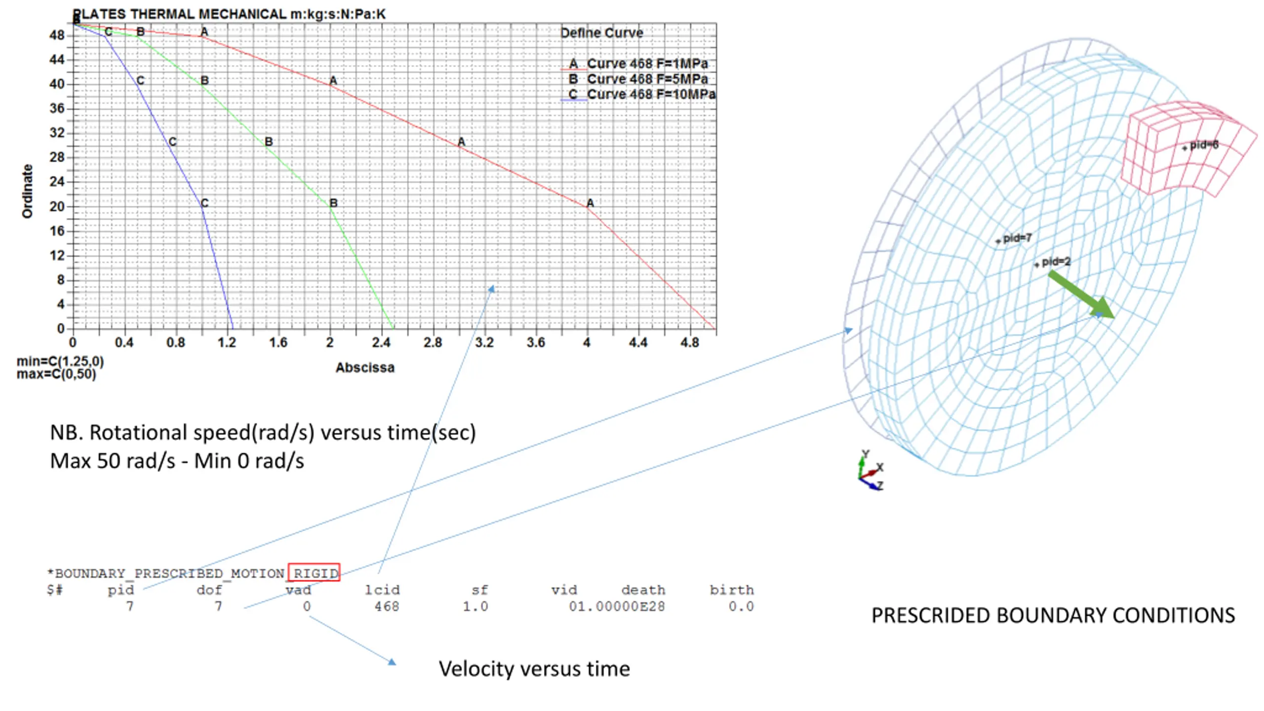 NB. Rotational speed(rad/s) versus time(sec) Max 50 rad/s - Min 0 rad/s PRESCRIDED BOUNDARY CONDITIONS Velocity versus time