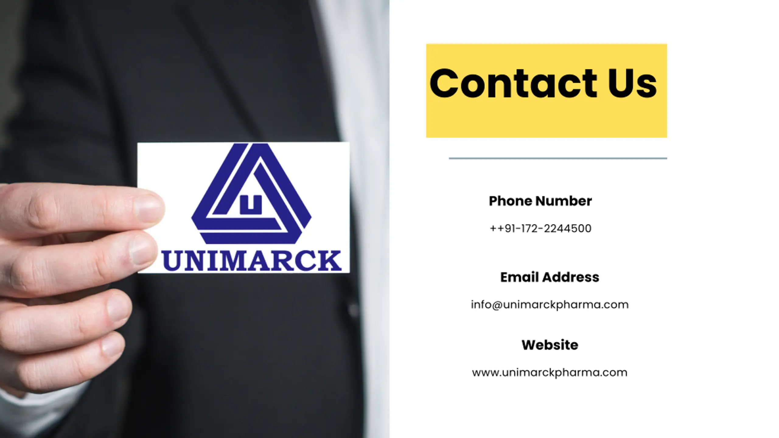 Contact Us Phone Number ++91-172-2244500 Email Address info@unimarckpharma.com Website www.unimarckpharma.com