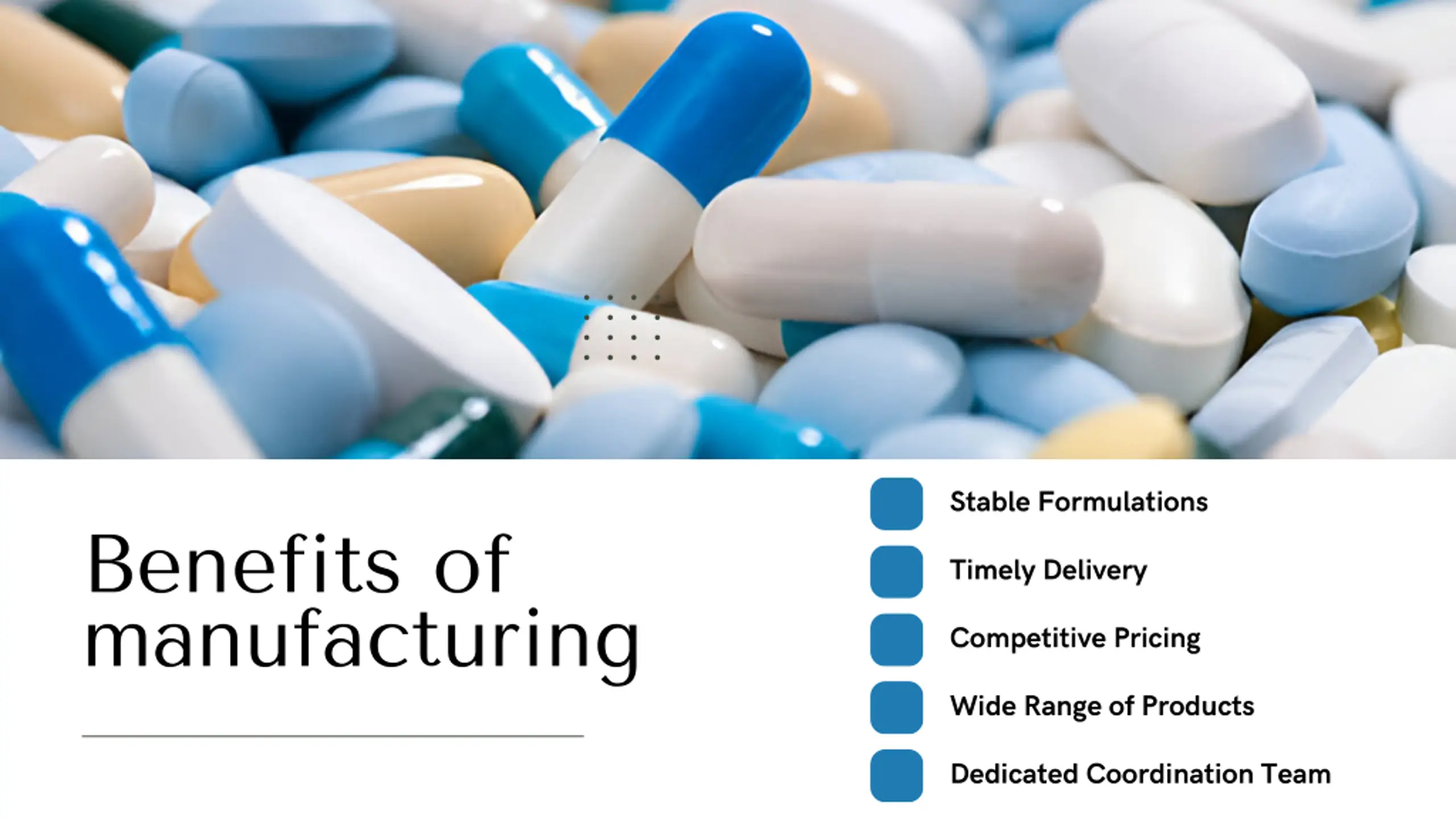 StableFormulations Benefits of manufacturing TimelyDelivery CompetitivePricing WideRangeofProducts DedicatedCoordinationTeam