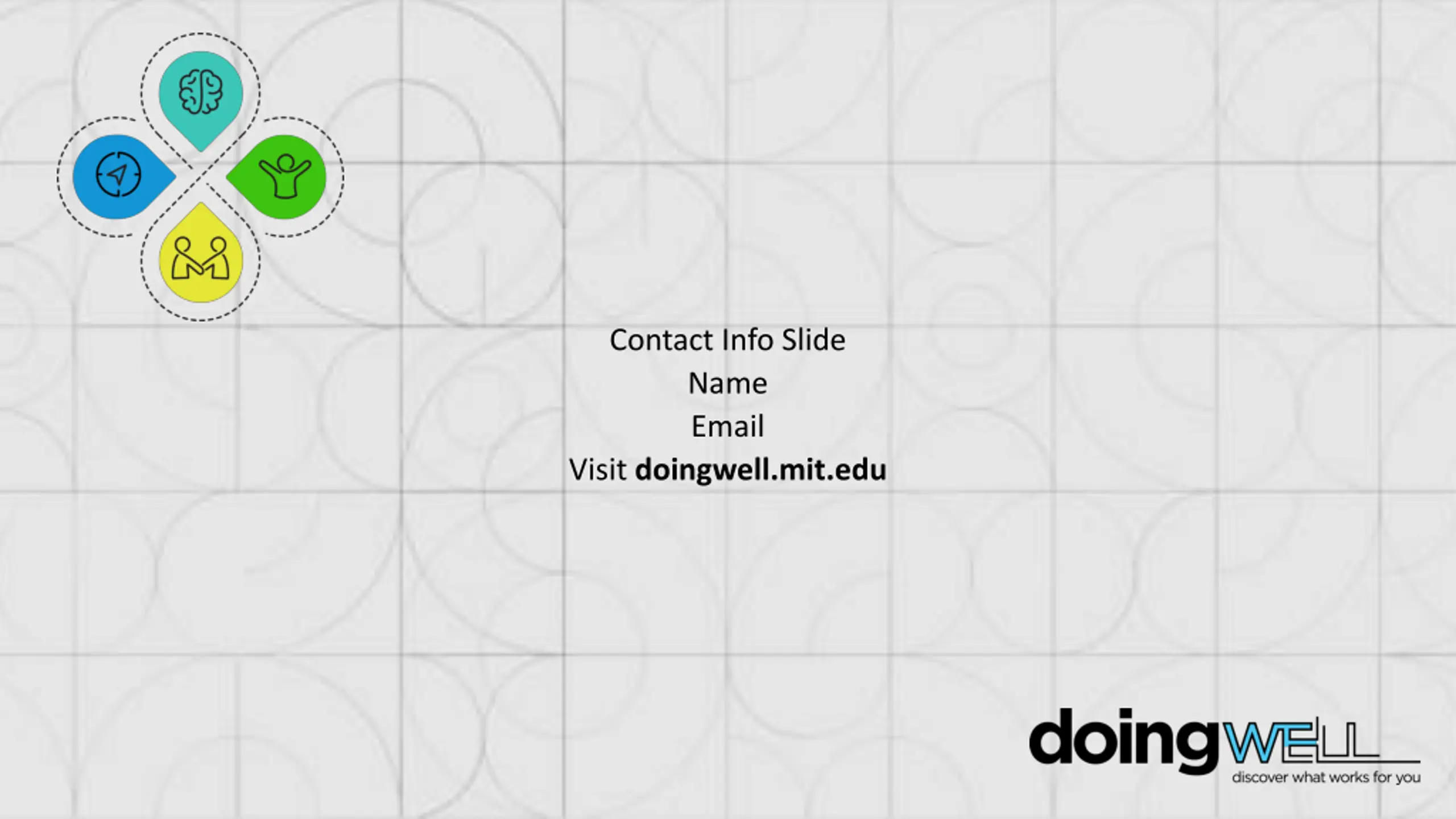 Contact Info Slide Name Email Visit doingwell.mit.edu