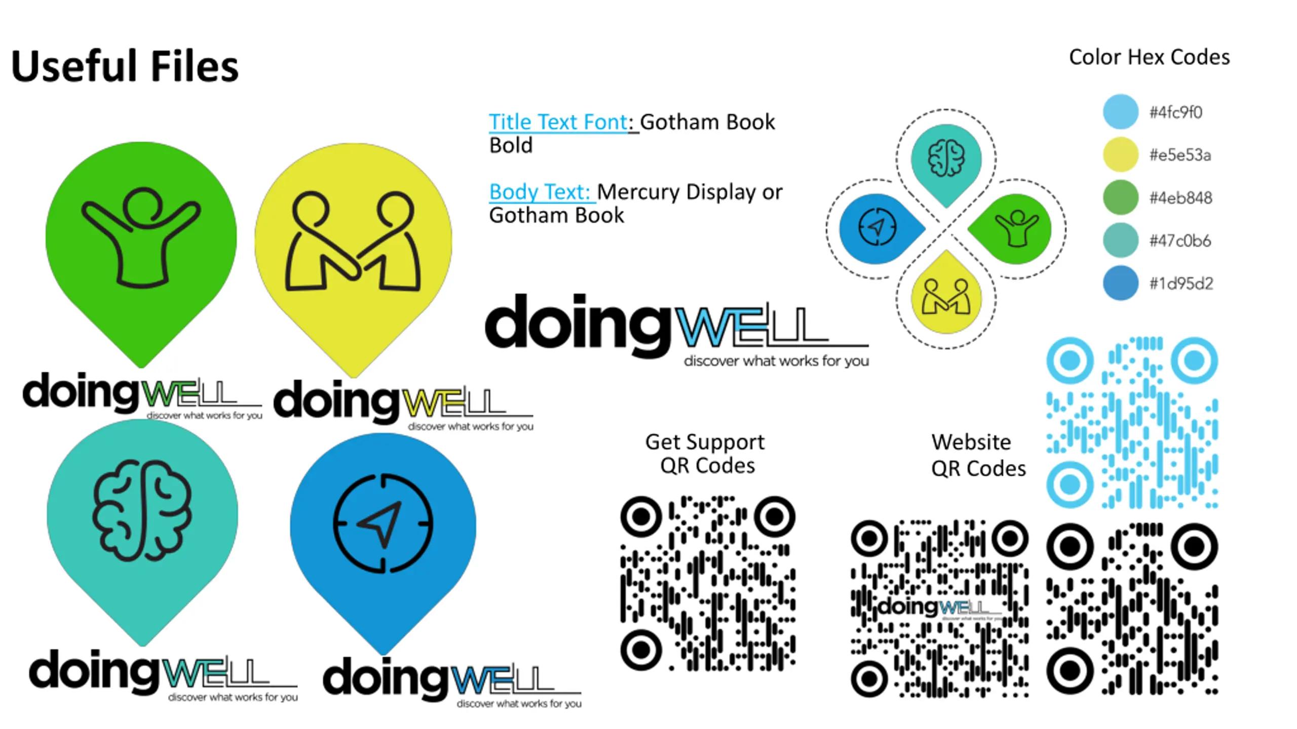 Useful Files Color Hex Codes Title Text Font: Gotham Book Bold Body Text: Mercury Display or Gotham Book Get Support QR Codes Website QR Codes