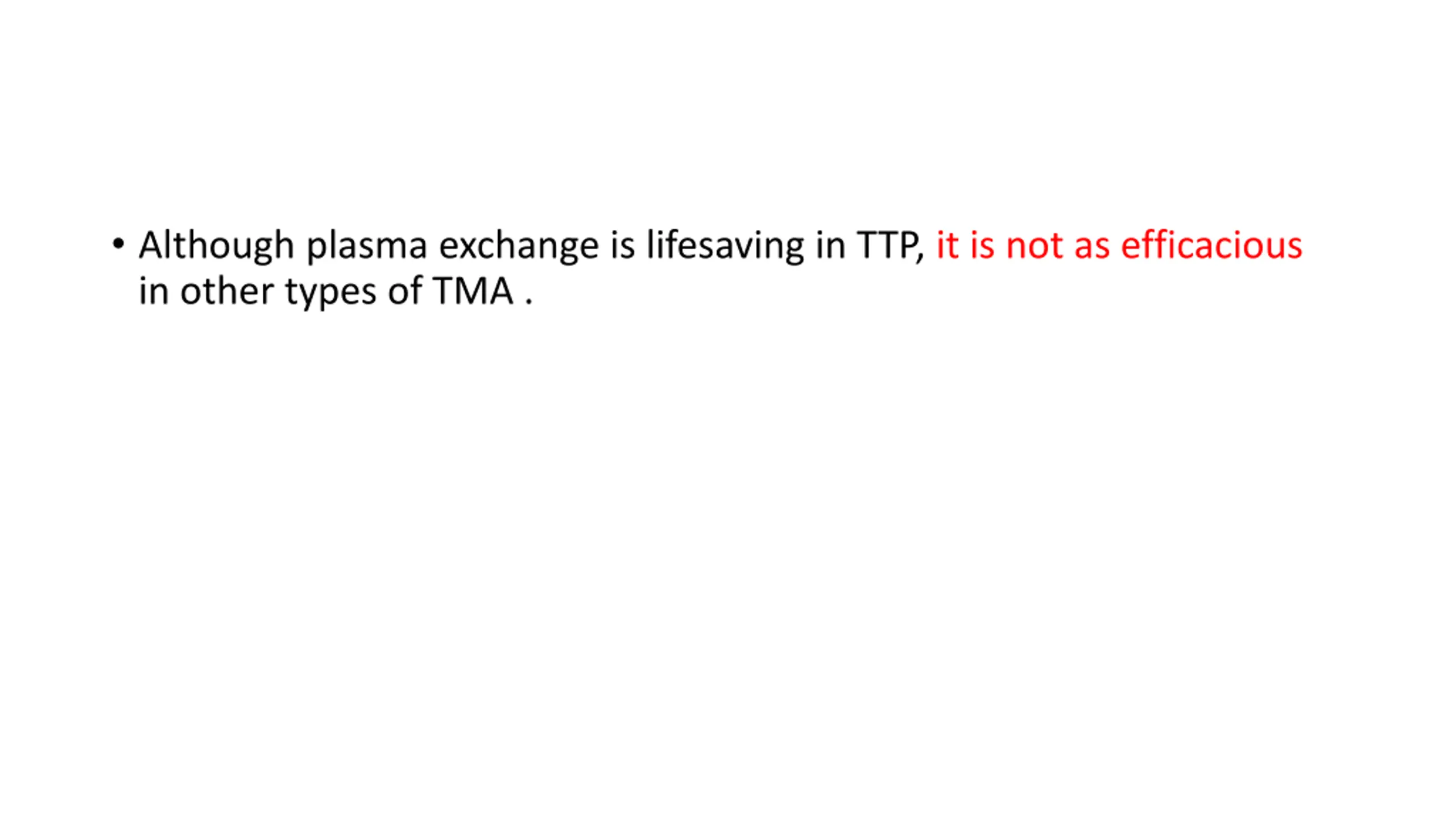 Although plasma exchange is lifesaving in TTP, it is not as efficacious in other types of TMA .