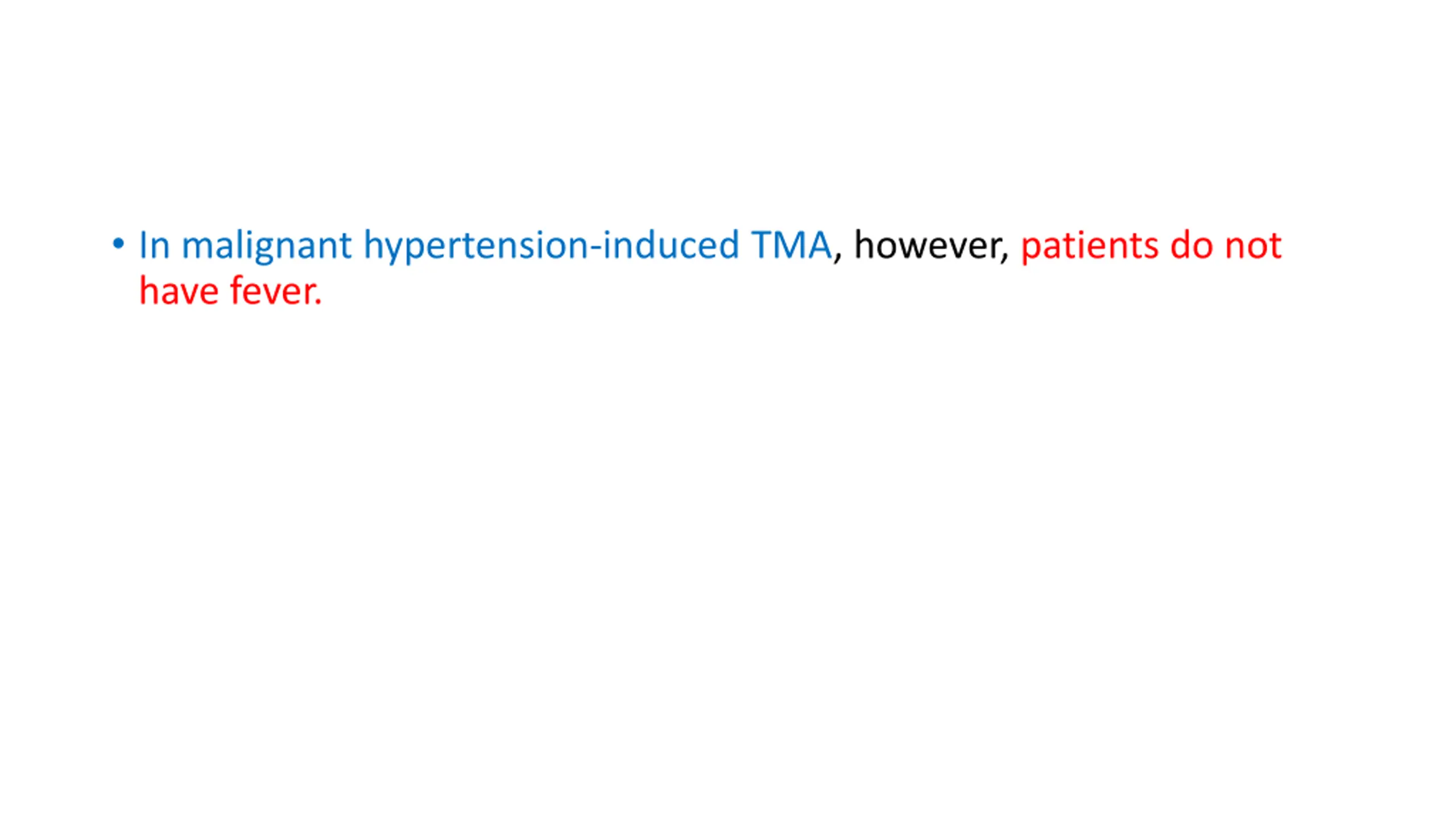 In malignant hypertension-induced TMA, however, patients do not have fever.