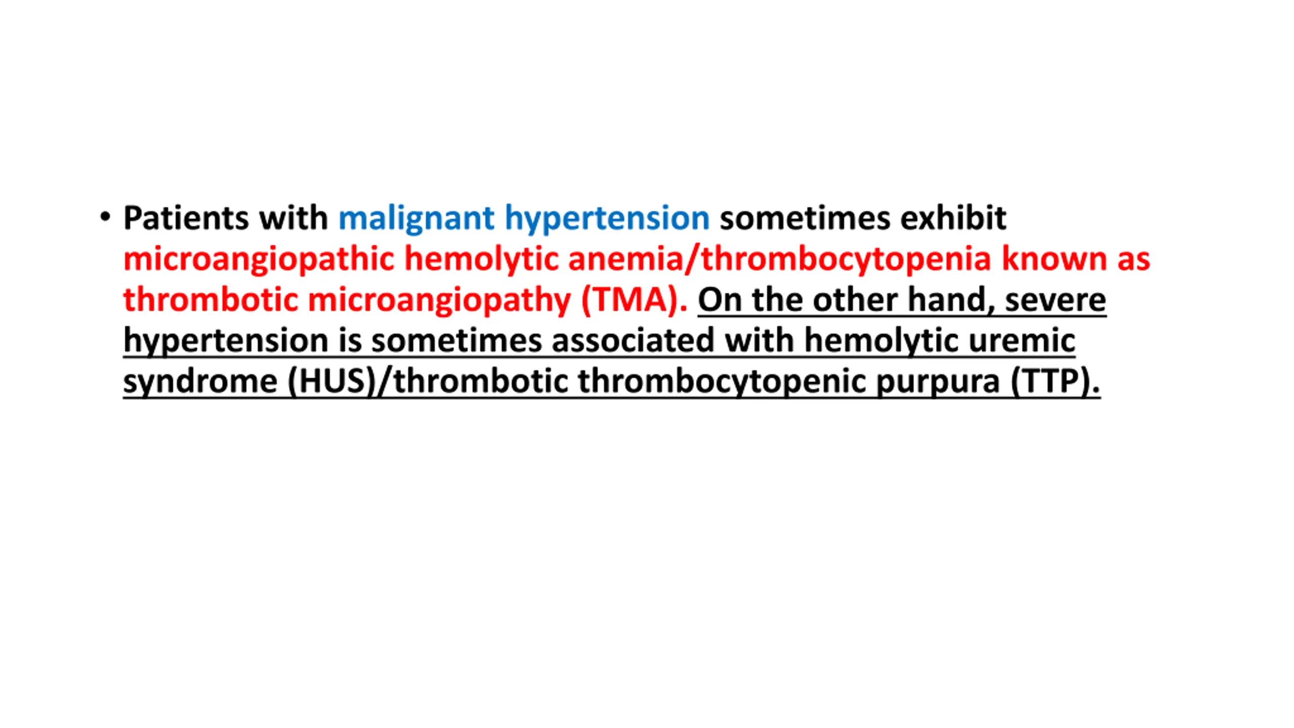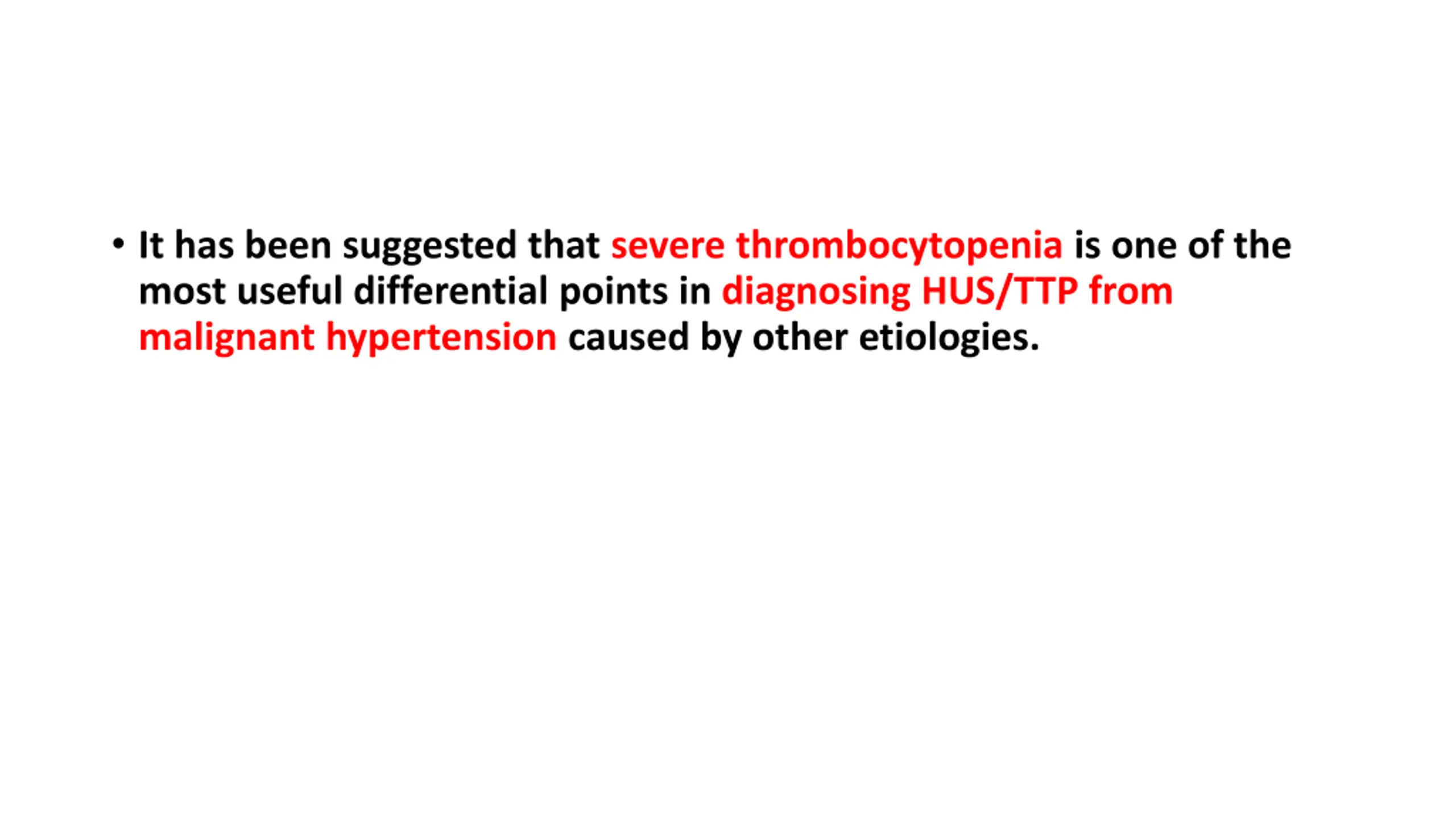 It has been suggested that severe thrombocytopenia is one of the most useful differential points in diagnosing HUS/TTP from malignant hypertension caused by other etiologies.
