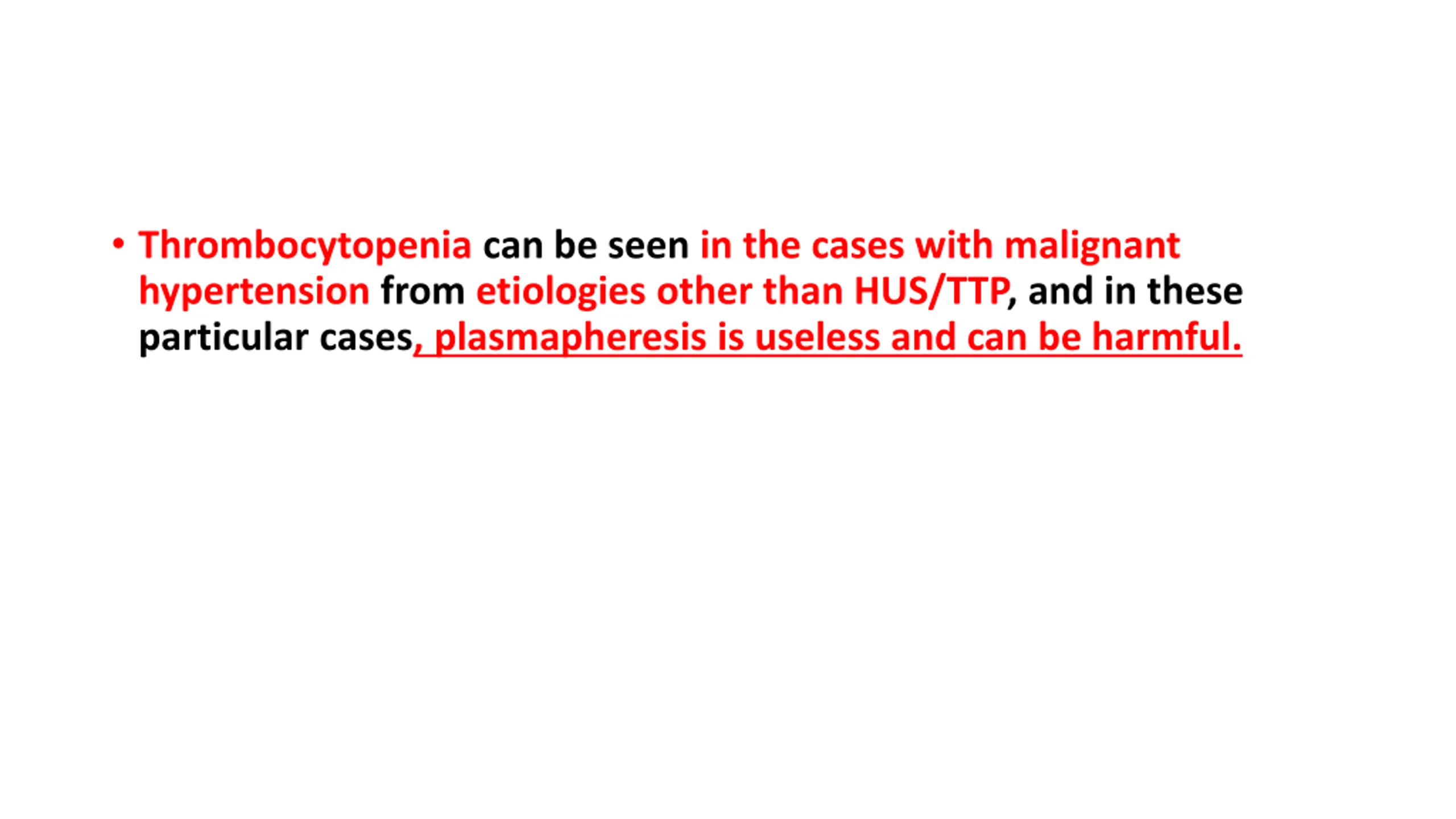 Thrombocytopenia can be seen in the cases with malignant hypertension from etiologies other than HUS/TTP, and in these particular cases, plasmapheresis is useless and can be harmful.