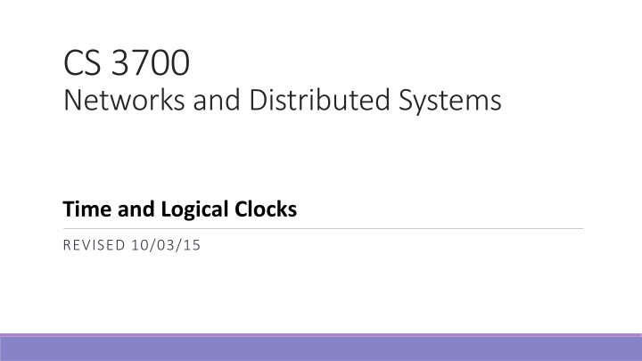 CS 3700 Networks and Distributed Systems Time and Logical Clocks REVISED 10/03/15
