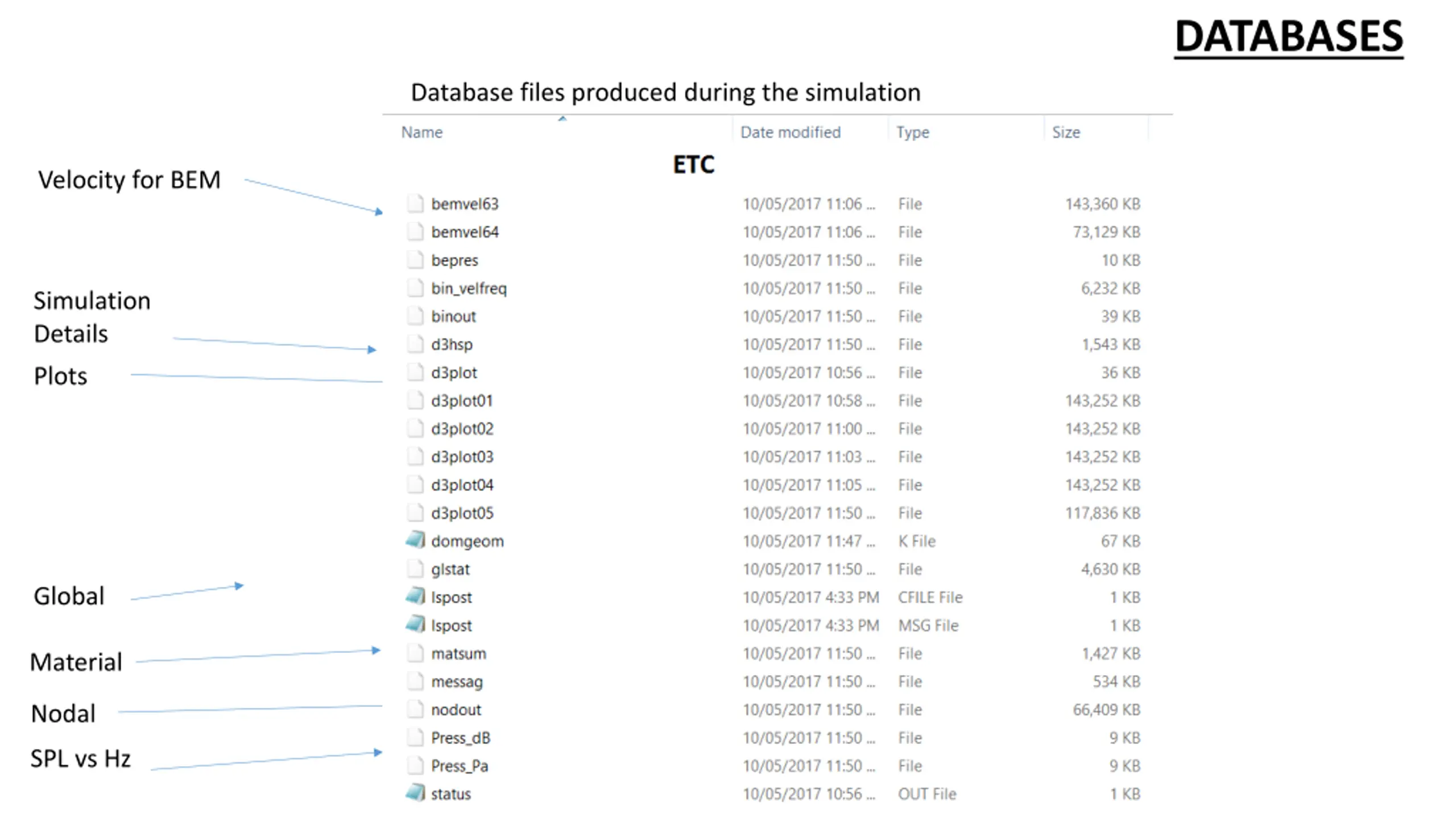 DATABASES Database files produced during the simulation Velocity for BEM Simulation Details Plots Global Material Nodal SPL vs Hz