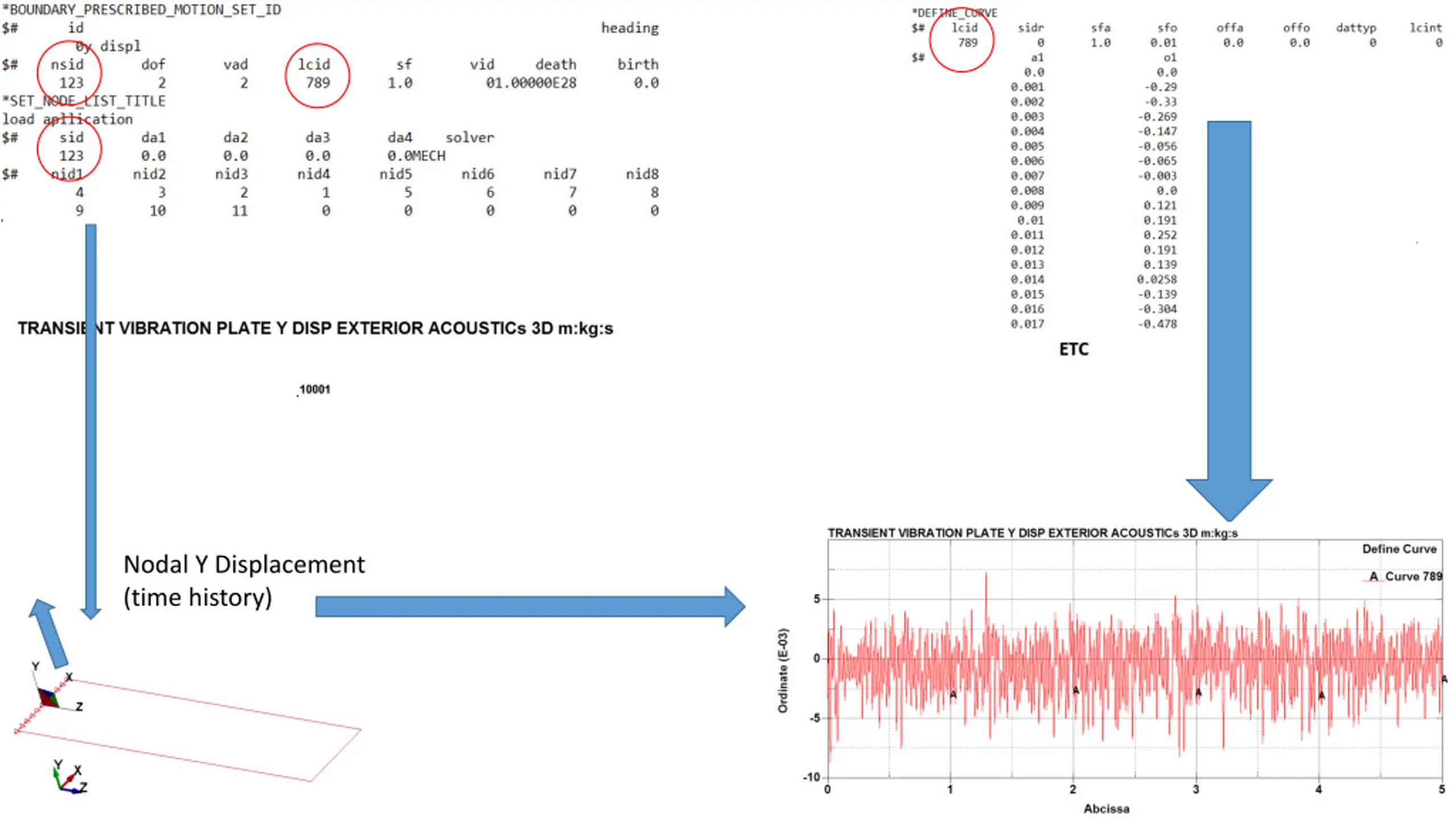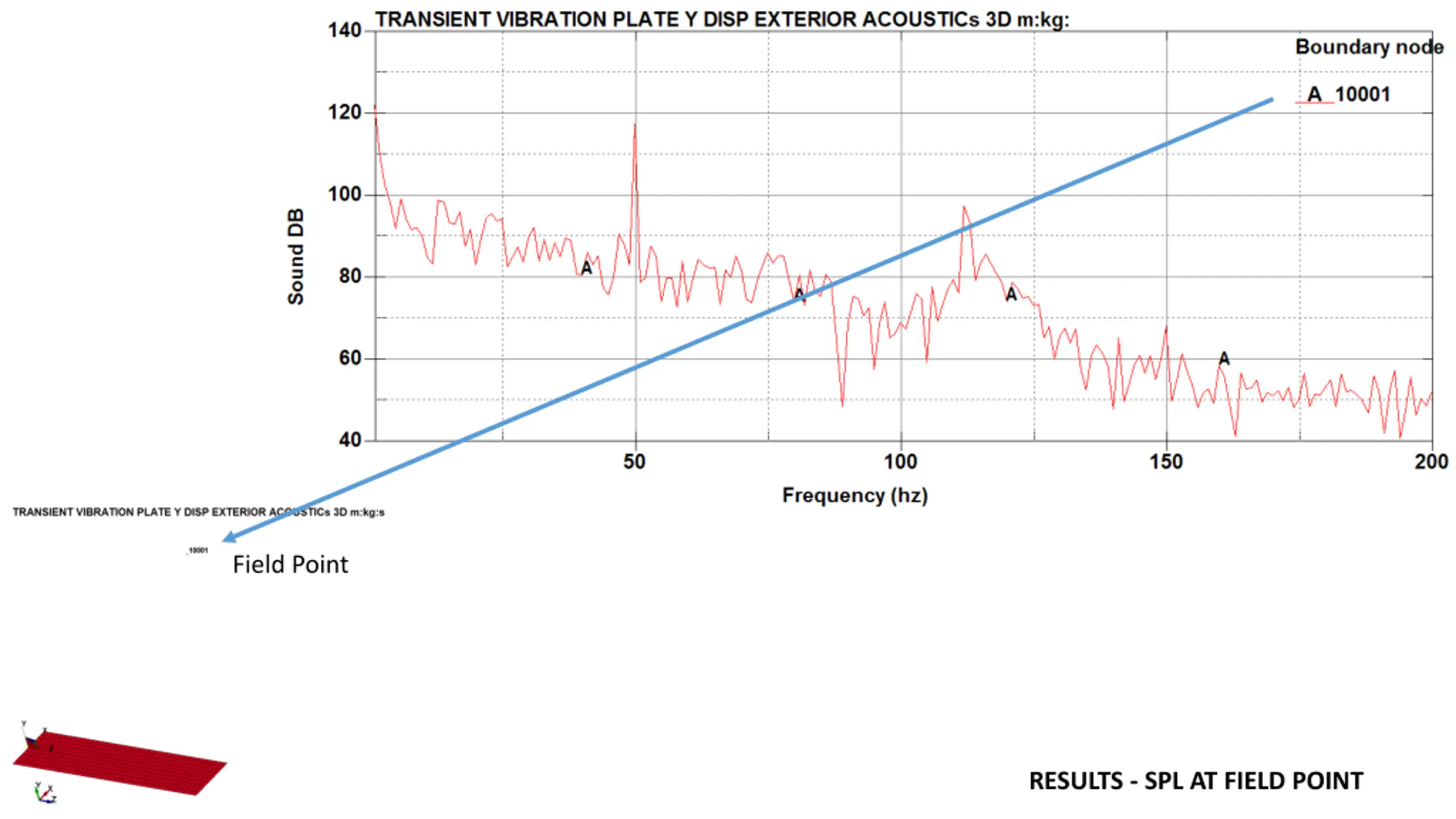 PLATE TRANSIENT VIBRATION PLATE TRANSIENT VIBRATION TIME HISTORY 3D BEM TIME HISTORY 3D BEM UNITS m:kg:s:N:Pa Field Point Location where SPL is to be calculated Y DISPLACEMENT TIME HISTORY Nodal Y Displacement (time history)