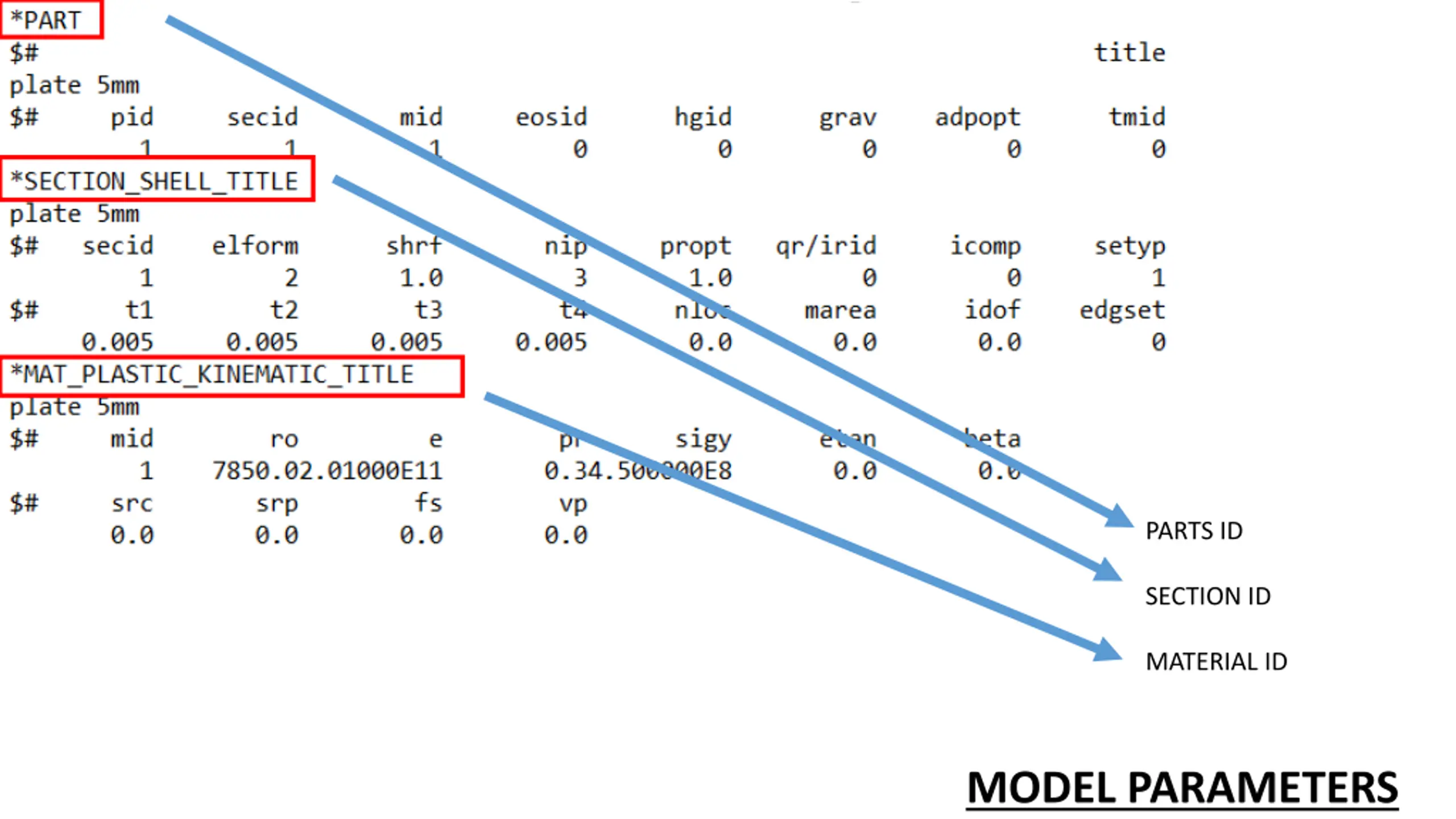 PARTS ID SECTION ID MATERIAL ID MODEL PARAMETERS