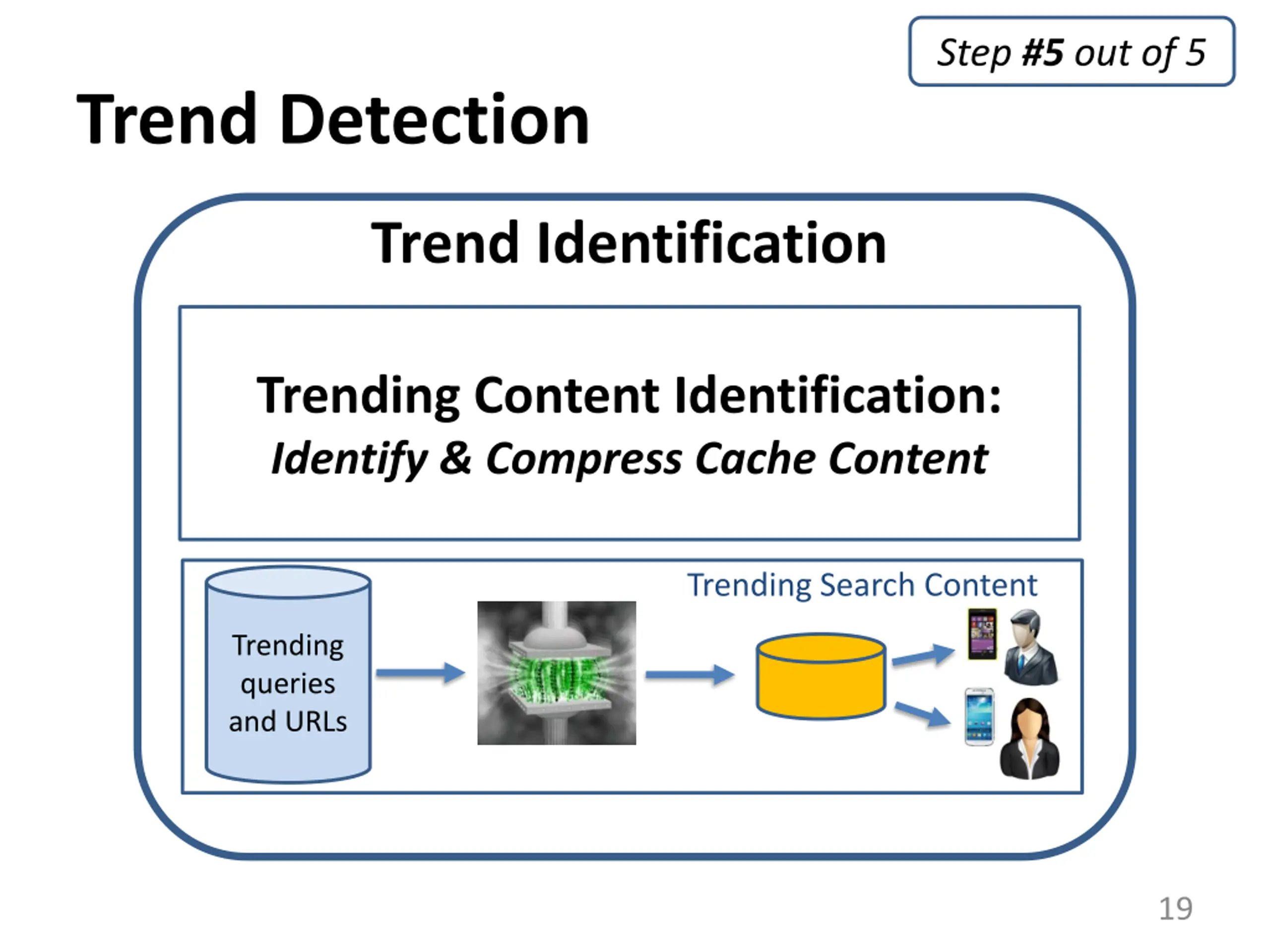 Step #5 out of 5 Trend Detection Trend Identification Trending Content Identification: Identify & Compress Cache Content Trending Search Content Trending queries and URLs 19