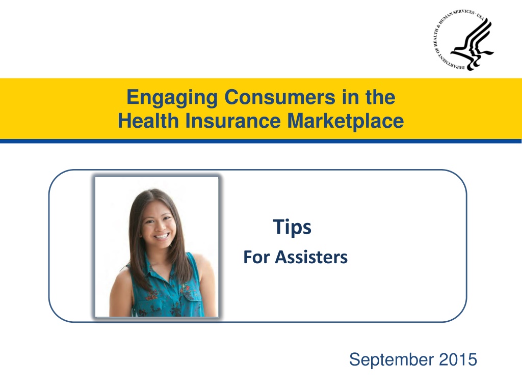 Engaging Consumers in the Health Insurance Marketplace Tips For Assisters September 2015