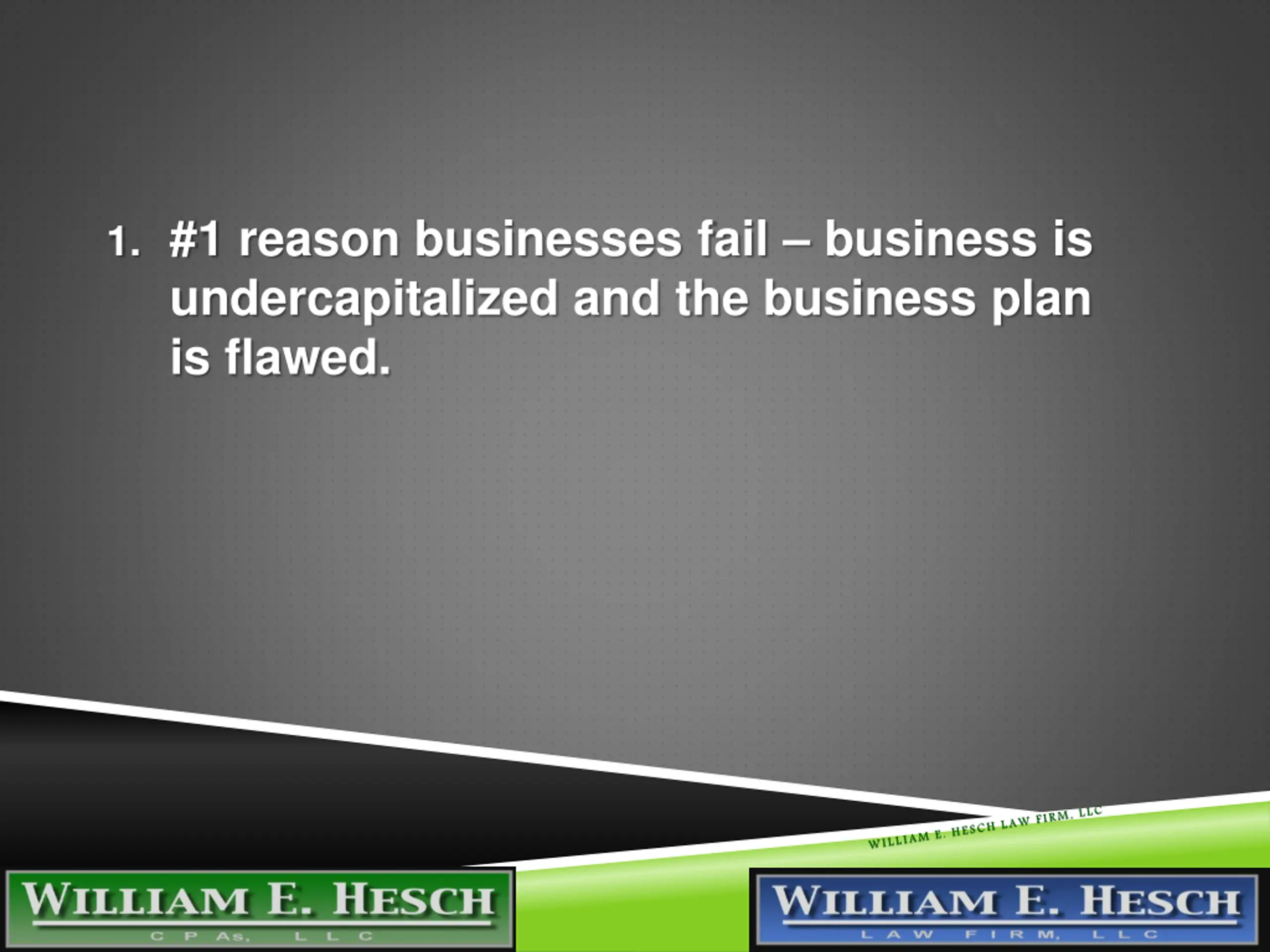 1. #1 reason businesses fail business is undercapitalized and the business plan is flawed. 3/21/2025
