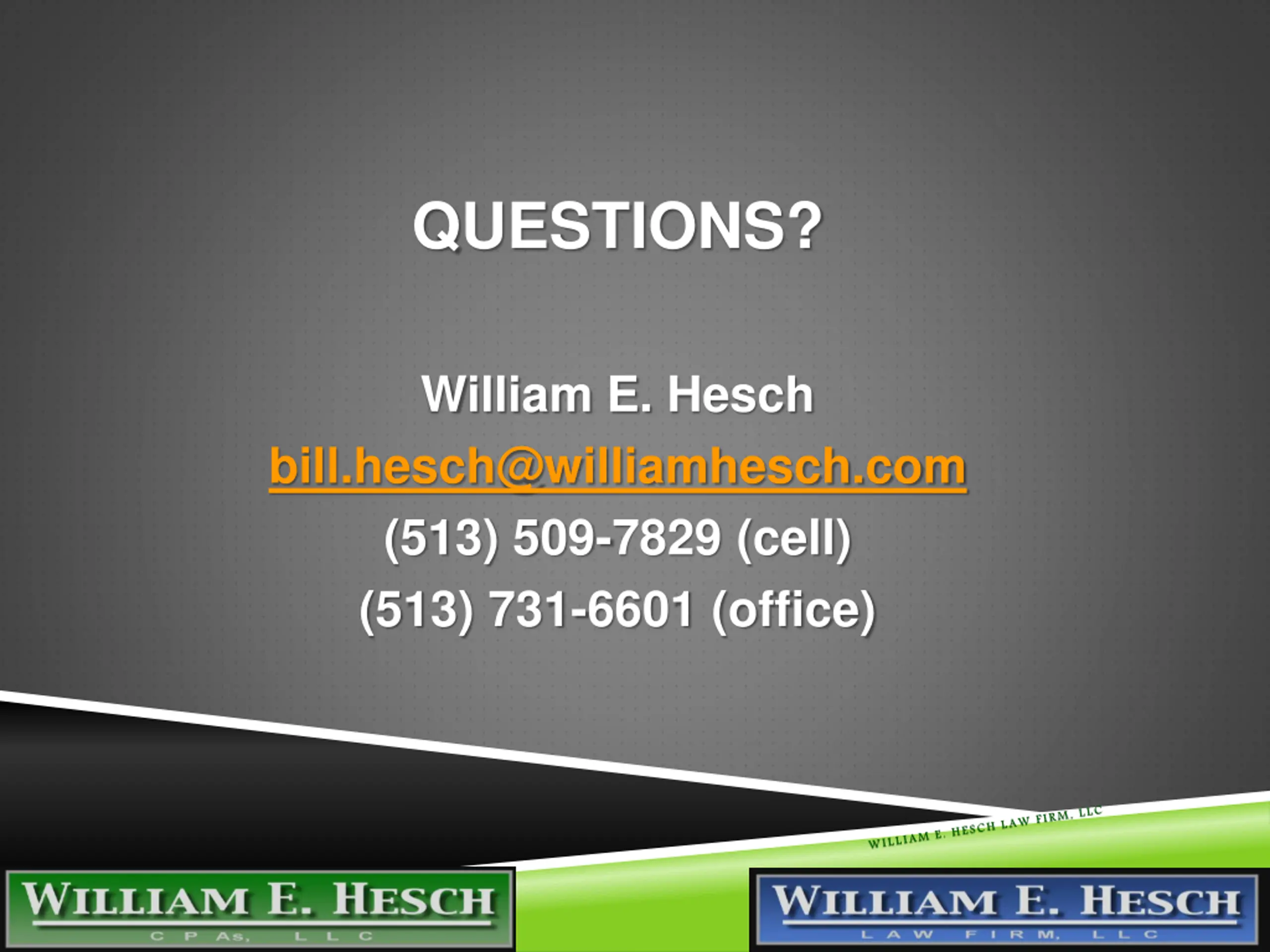 QUESTIONS? William E. Hesch bill.hesch@williamhesch.com (513) 509-7829 (cell) (513) 731-6601 (office) 3/21/2025