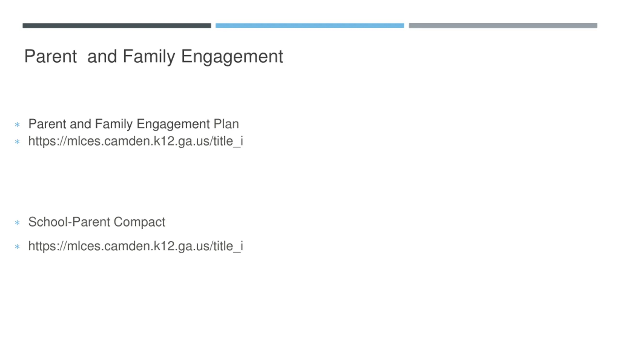 Parent and Family Engagement Parent and Family Engagement Plan https://mlces.camden.k12.ga.us/title_i School-Parent Compact https://mlces.camden.k12.ga.us/title_i