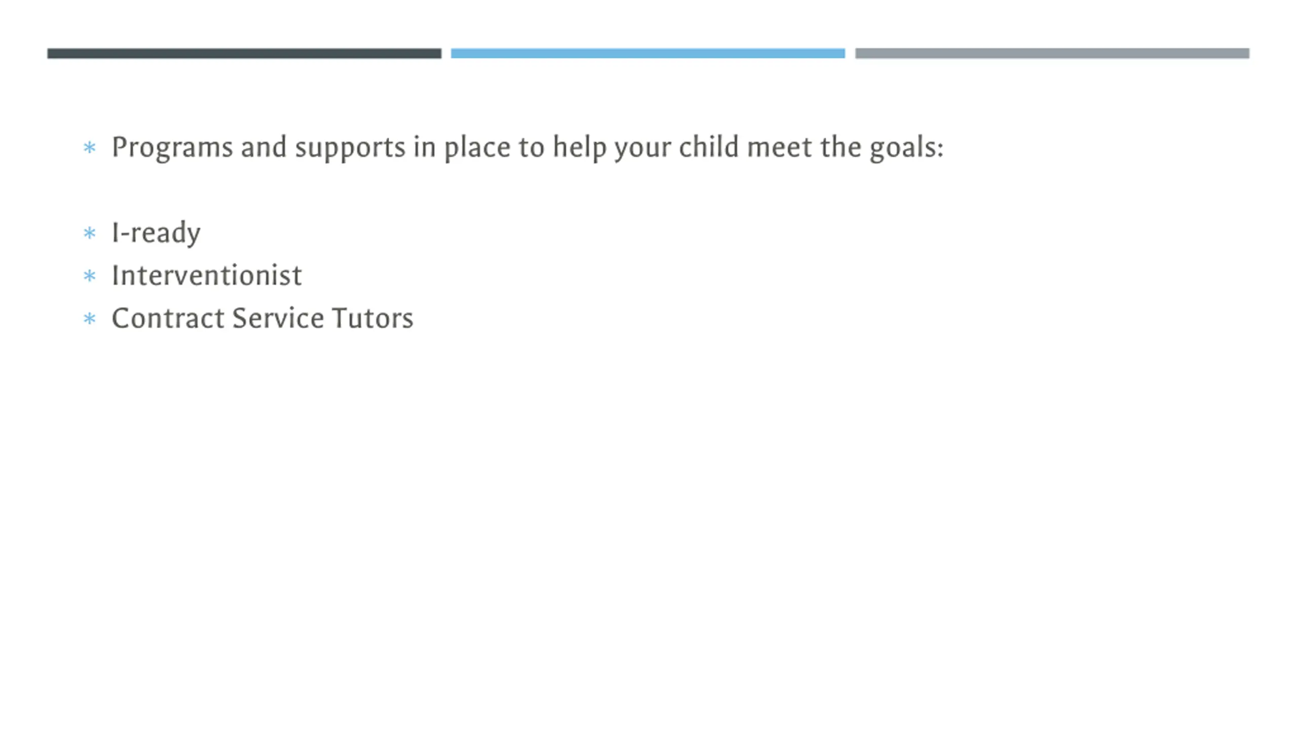 Schoolwide Plan Programs and supports in place to help your child meet the goals: I-ready Interventionist Contract Service Tutors