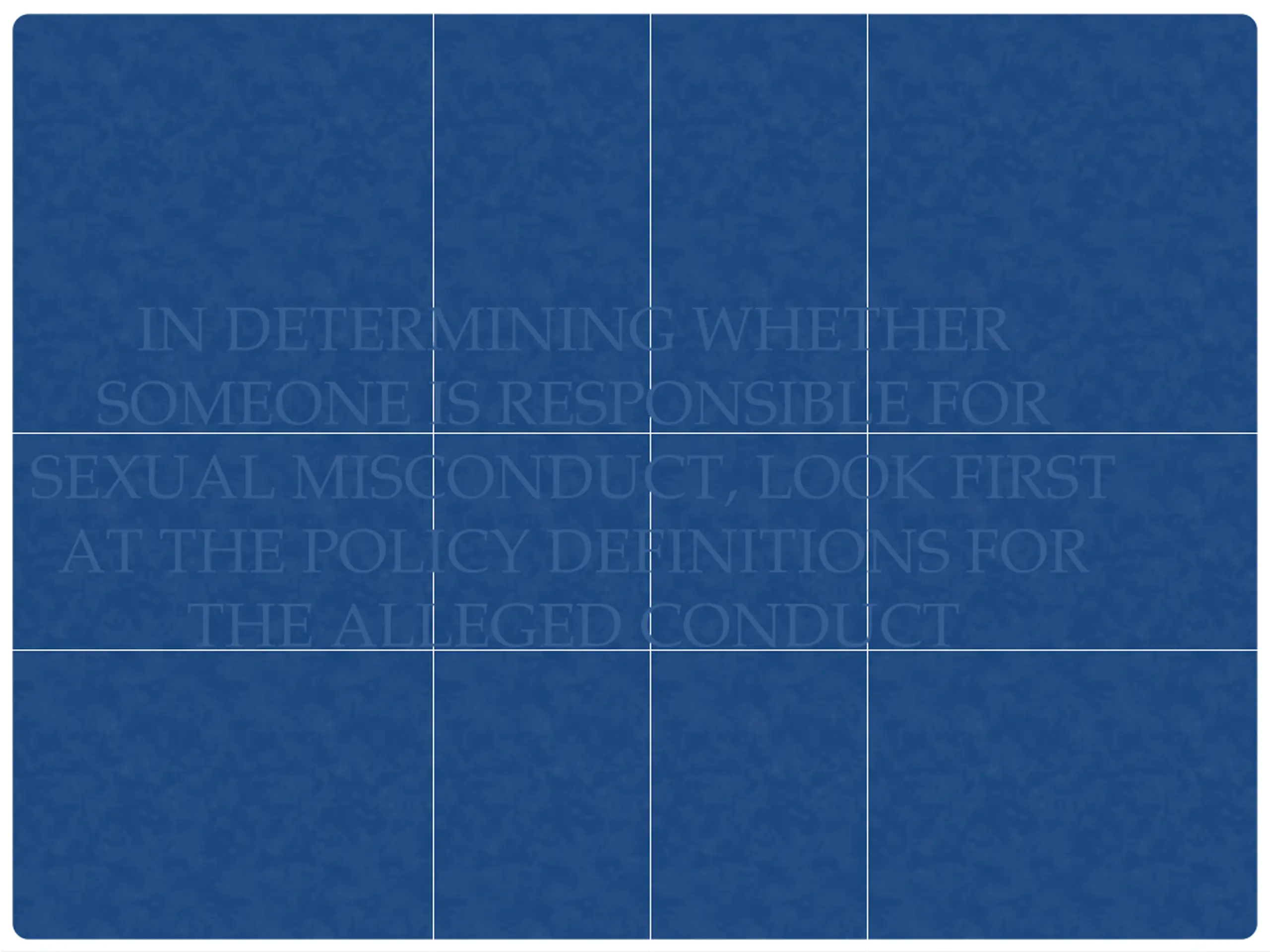 IN DETERMINING WHETHER SOMEONE IS RESPONSIBLE FOR SEXUAL MISCONDUCT, LOOK FIRST AT THE POLICY DEFINITIONS FOR THE ALLEGED CONDUCT
