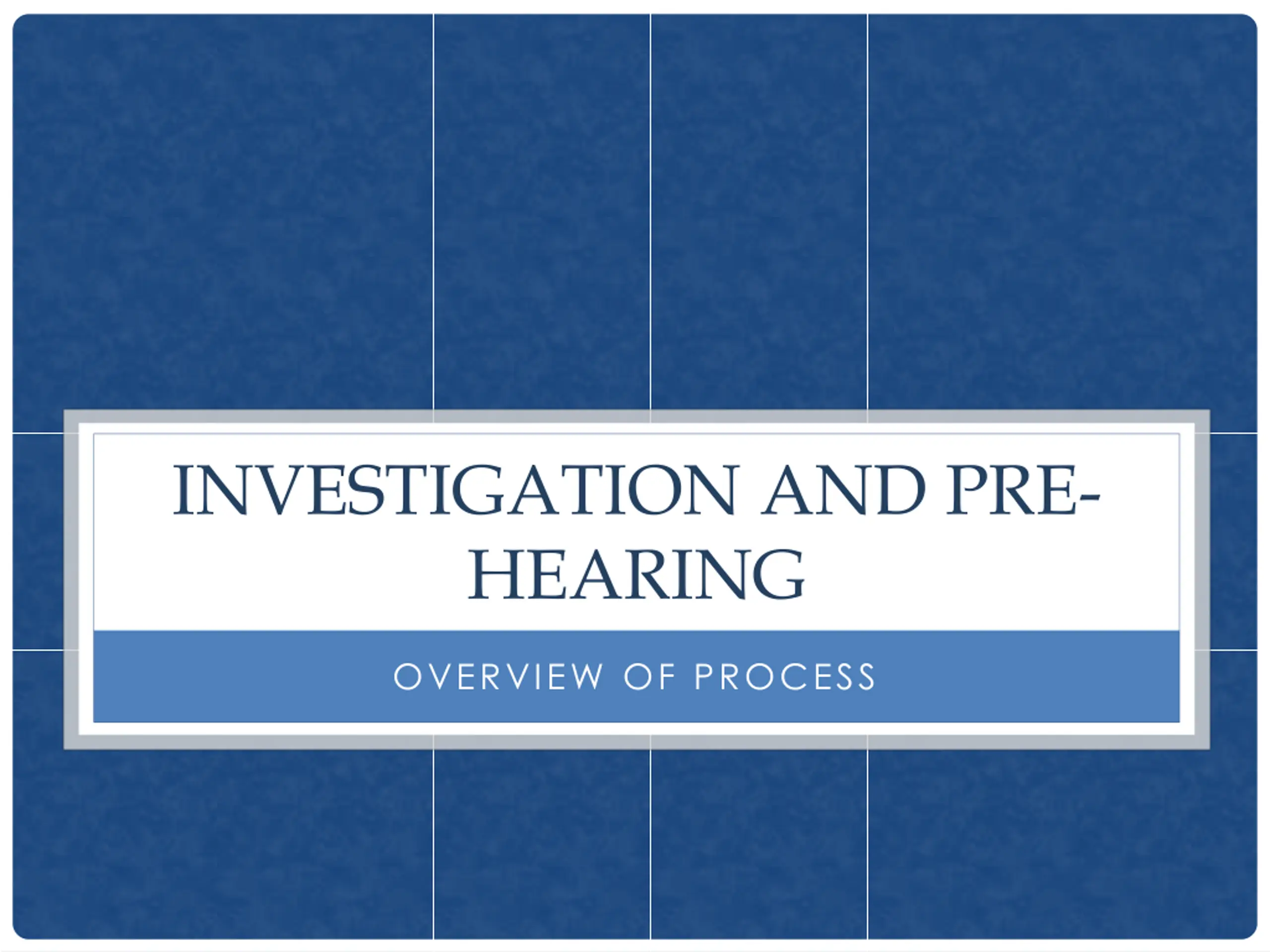 INVESTIGATION AND PRE- HEARING OVERVIEW OF PROCESS