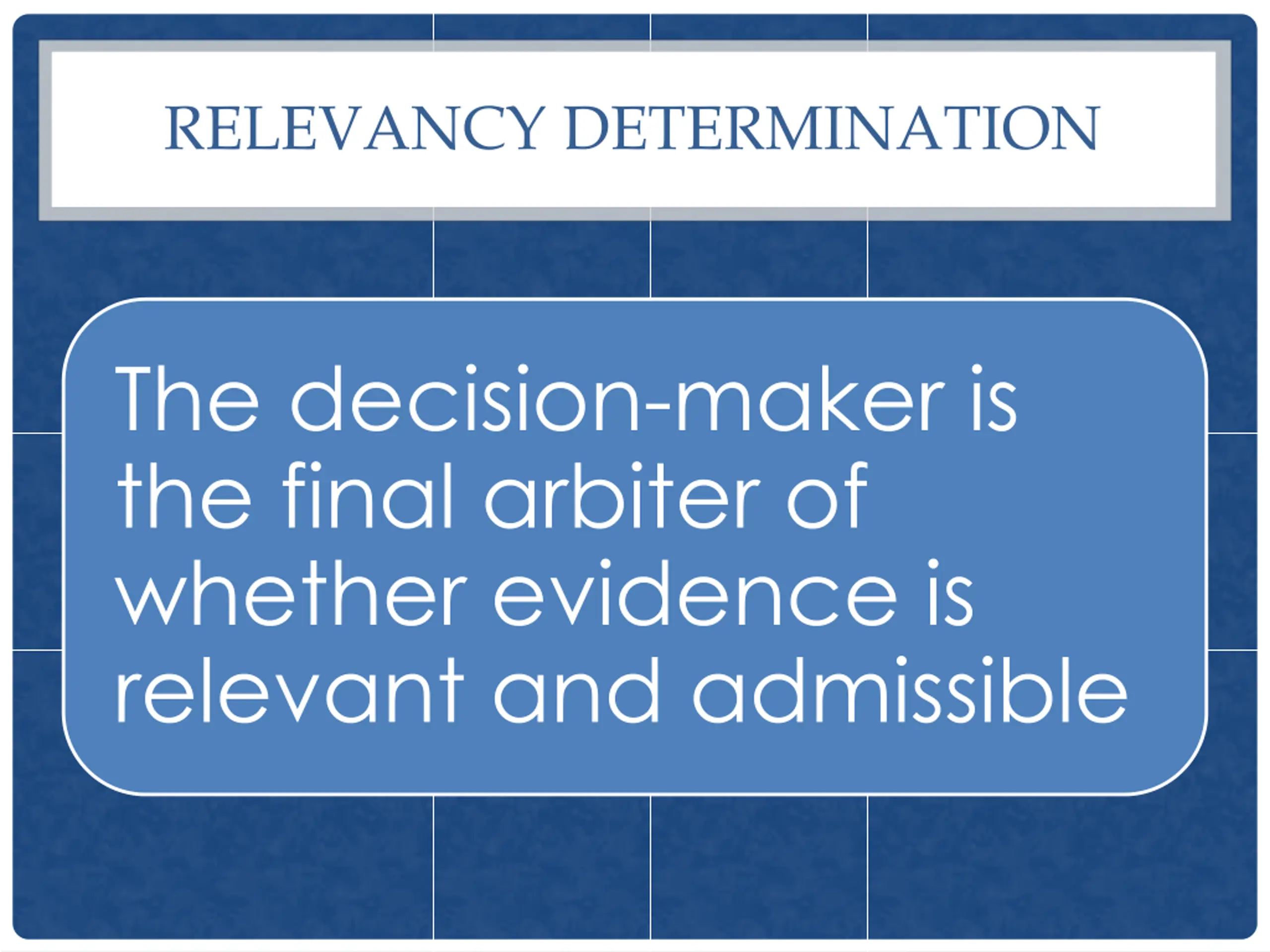 RELEVANCY DETERMINATION The decision-maker is the final arbiter of whether evidence is relevant and admissible