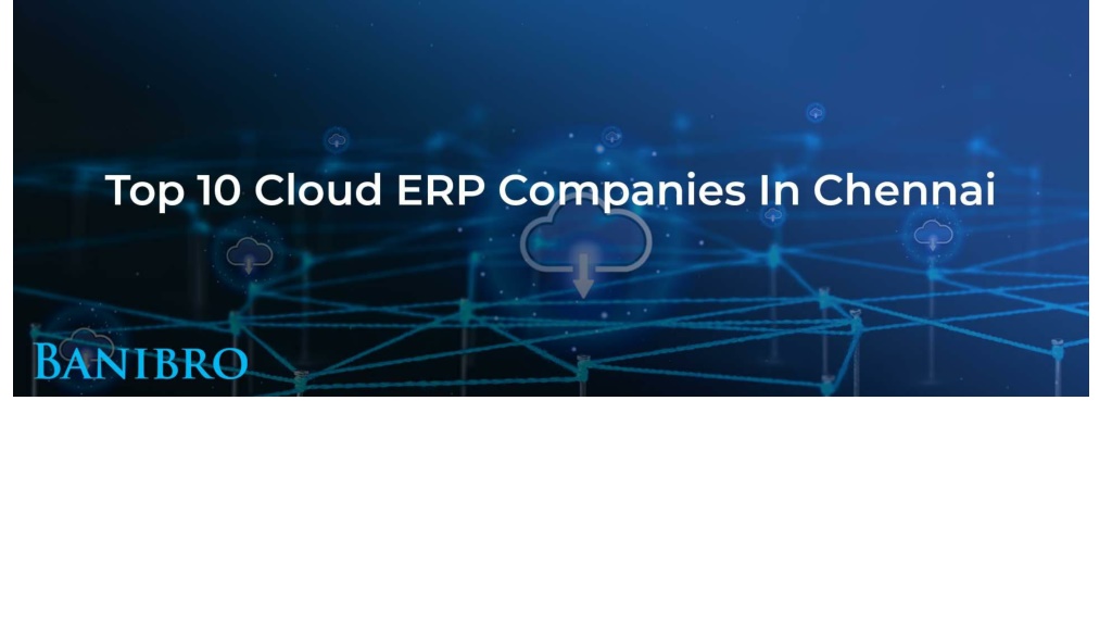 1. Banibro IT Solutions: Founded in 2013, Banibro IT Solutions has grown to serve a global clientele exceeding 45 clients. Our team empowers businesses to thrive in the modern era through advanced technological offerings. We prioritize Odoo ERP implementation, along with the creation of mobile applications, establishing ourselves as one of the best top 10 cloud ERP companies in Chennai. SAP India: SAP s cloud-based ERP solutions furnish Chennai s businesses with real-time analytics, streamlined supply chains, and intelligent automation. Their suite of software accommodates diverse sectors, empo Services : ERP Implementation, ERP Customization, ERP Consulting, ERP Development, ERP Integration, ERP Customization, ERP Configuration, ERP Maintenance, ERP Support ERP Licensing, ERP Hosting, ERP Training, ERP Migration. Specialized Industries : Insurance, Finance, Manufacturing, Healthcare, Legal, Media, hrms Starting Price : Available on Request Company size : 118 employees No of Clients : 50 API Integration: Yes Mobile ERP App : Yes Free ERP Demo : Yes Availability of ERP Support After Implementation: Yes Free ERP Trial: Yes The cloud and on-premises are both options ERP Inperson/Onsite support: Yes Locations: Chennai, Coimbatore, United Arab Emirates, and the United States Website: www.banibro.com