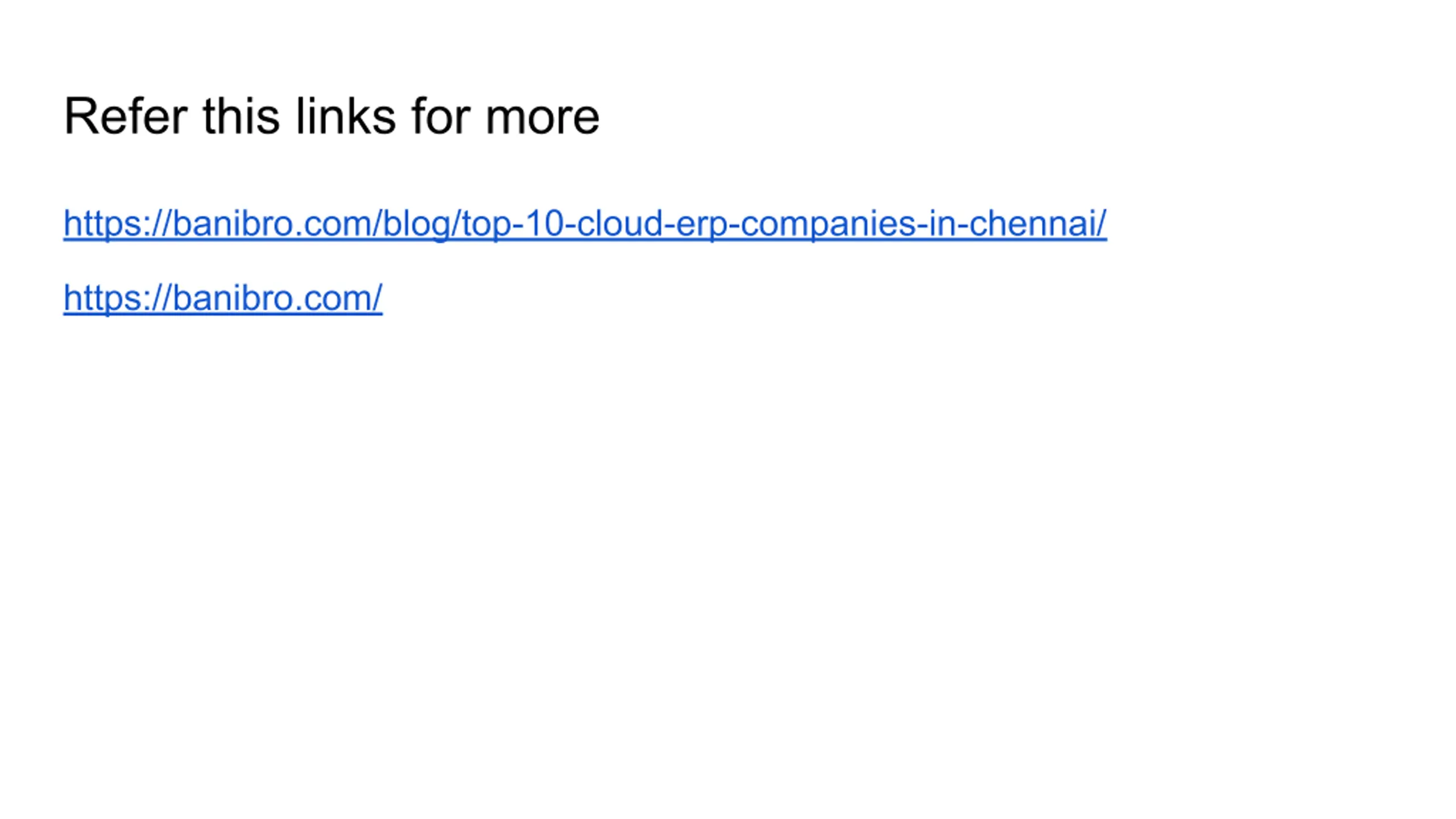 Refer this links for more https://banibro.com/blog/top-10-cloud-erp-companies-in-chennai/ https://banibro.com/