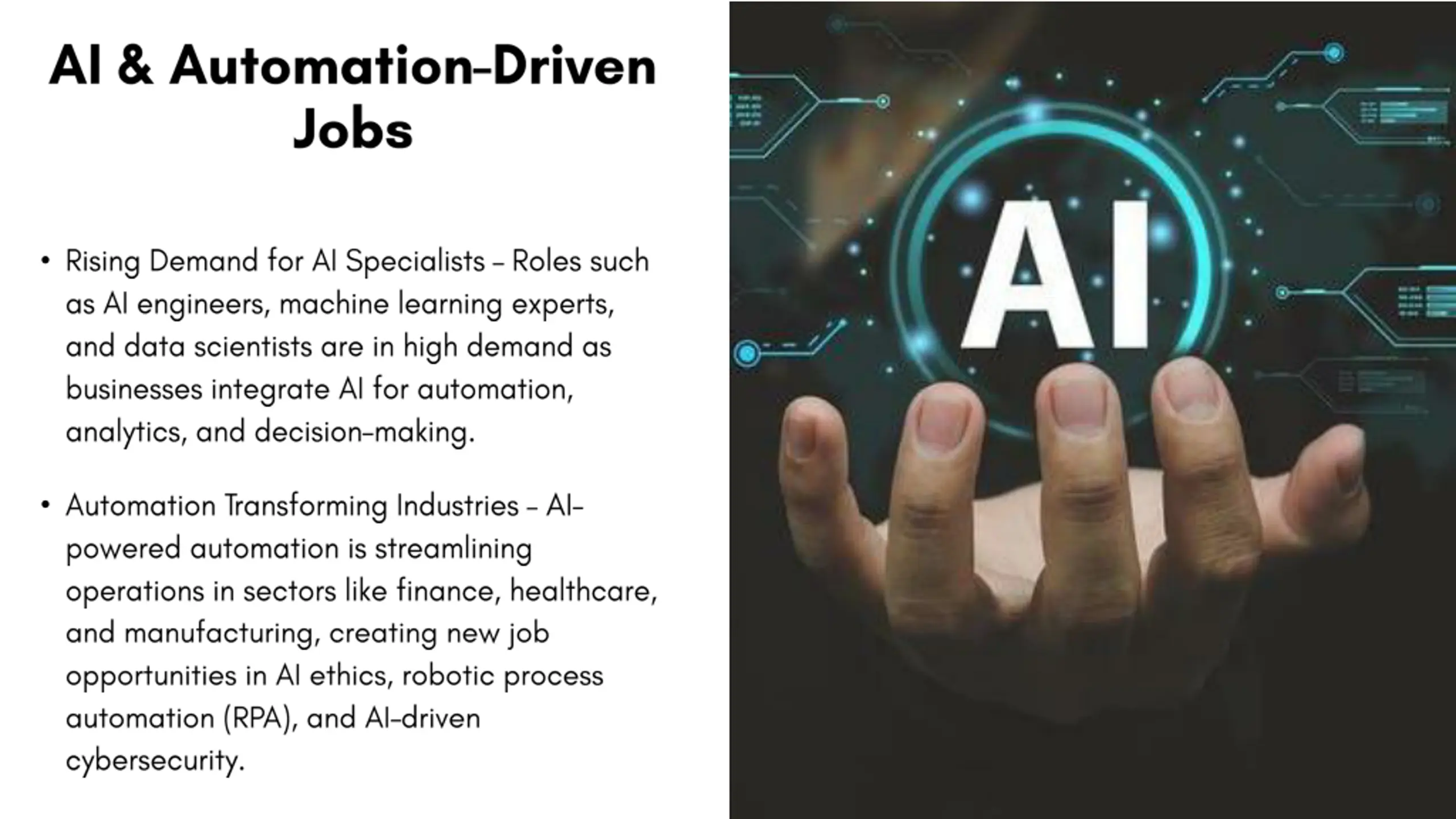 In 2025, top job trends include AI roles, remote work, green jobs, cybersecurity, healthcare innovation, and digital content creation, driven by tech and sustainability.