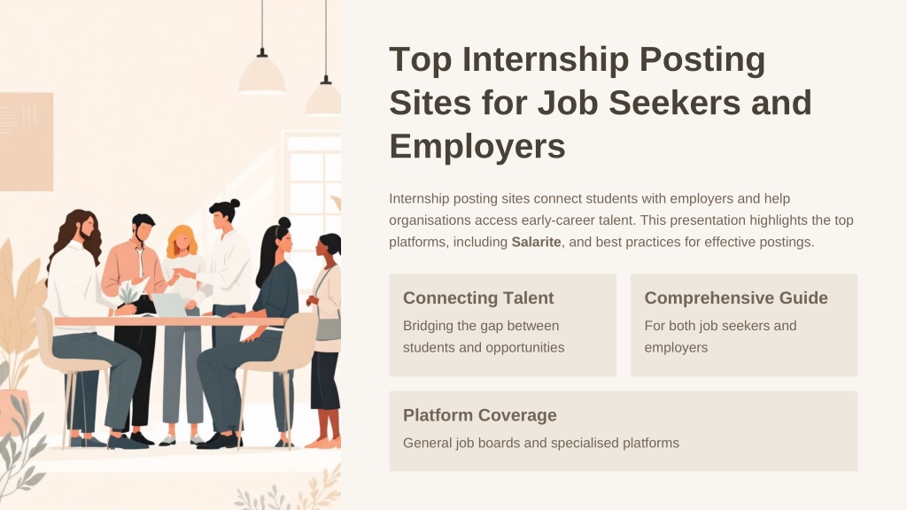 Top Internship Posting Sites for Job Seekers and Employers Internship posting sites connect students with employers and help organisations access early-career talent. This presentation highlights the top platforms, including Salarite, and best practices for effective postings. Connecting Talent Comprehensive Guide Bridging the gap between students and opportunities For both job seekers and employers Platform Coverage General job boards and specialised platforms