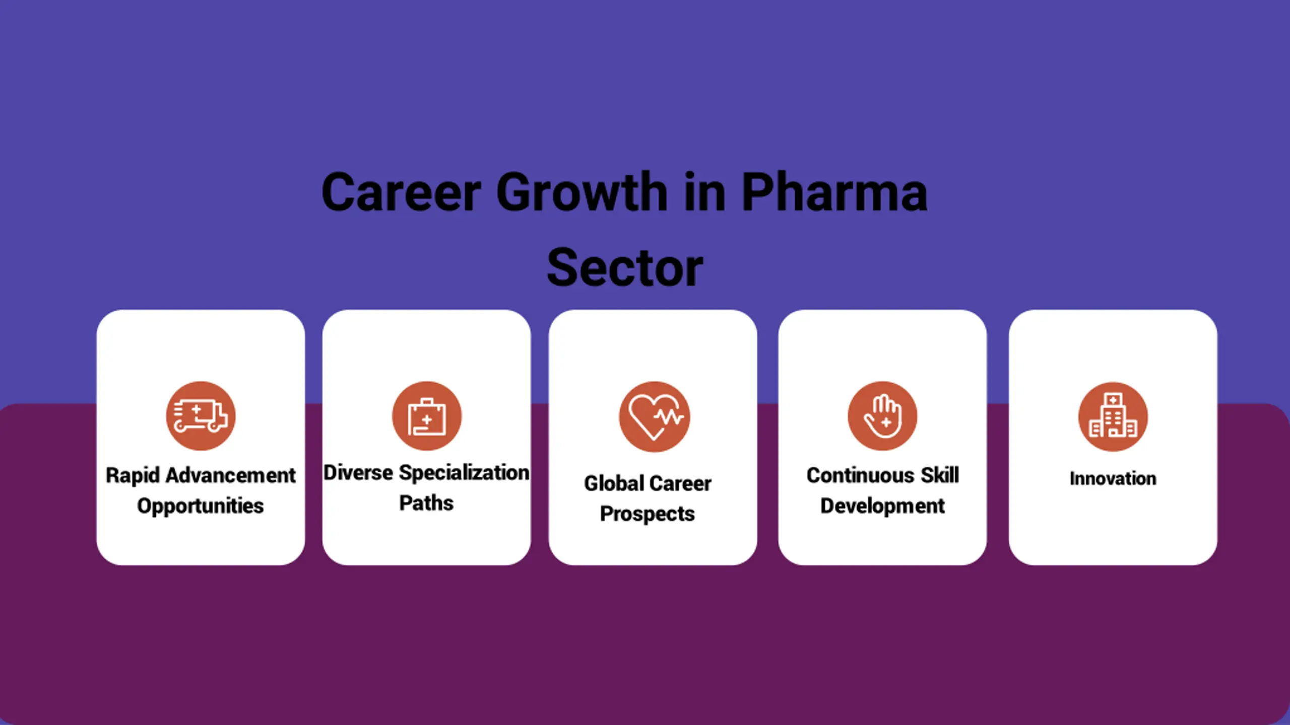 Career Growth in Pharma Sector Diverse Specialization Paths Rapid Advancement Opportunities Continuous Skill Development Innovation Global Career Prospects